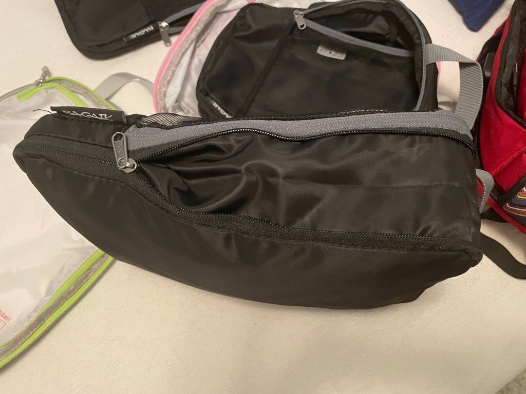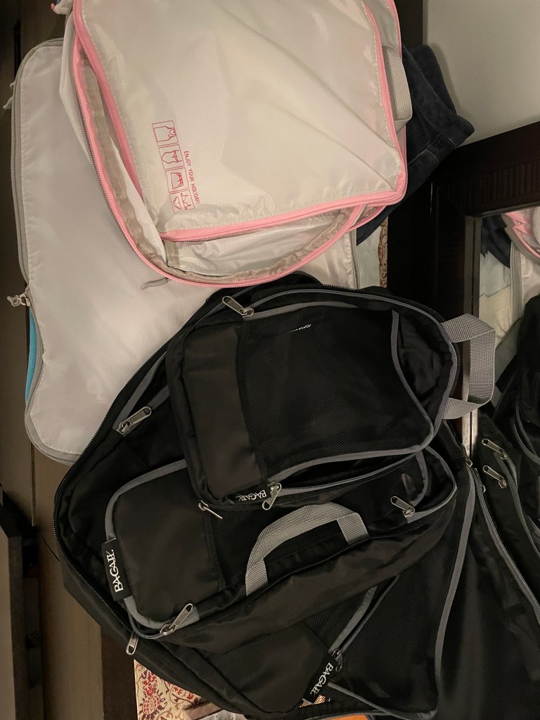 So I set out all my clothes, folded them into cubes and filled my backpack and carry-on tote. After weeks of thinking about what I would need and wanted to take with me, I was surprised that almost everything fit. I would need to eliminate a few items but not many. Now to see if I could carry it. So I took a walk around my block. It was in the high 70’s and there is a nice hill up in one direction so I thought it was a good test. My backpack weighed in at about 30 pounds and my tote a few more. And although I was able to complete the walk, it tired me out and my shoulders ached. So I decided not to use the backpack but instead rely on the kindness of strangers or hire someone to help me when my roller bag doesn’t work. But I did like the idea of a backpack, so I ditched the tote bag and bought a smaller bright red backpack to use as my personal item.