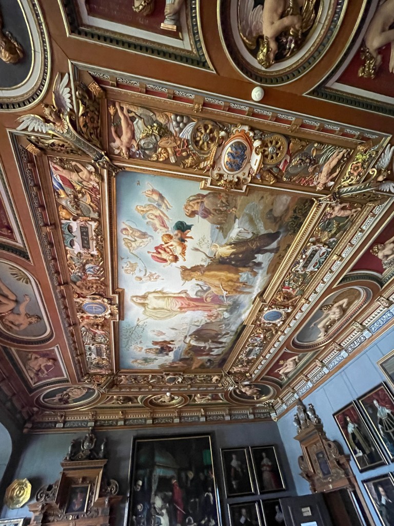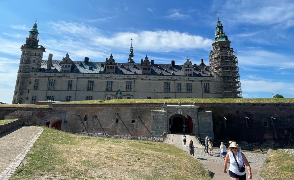 Denmark once ruled all of Scandinavia, parts of Germany and England and islands all the way in the West Indies. Through wars however they lost it all except Greenland and the Farro Islands. Their kings lived in some pretty nice castles. One castle, originally built by King Frederik in the 1400’s and expanded by his son Christian IV, was the setting for Shakespeare’s Hamlet. From its ramparts not only could they see Sweden across the strait, they could bombard the waterway if the Swedes tried to cross. Another one, actually a summer home, was very opulent with art throughout – portraits, shields, paintings, bas-relief, carved and gilded furniture and so much more. There was more art work on the ceiling than I have ever seen. Beautiful grounds surrounded several of the structures.