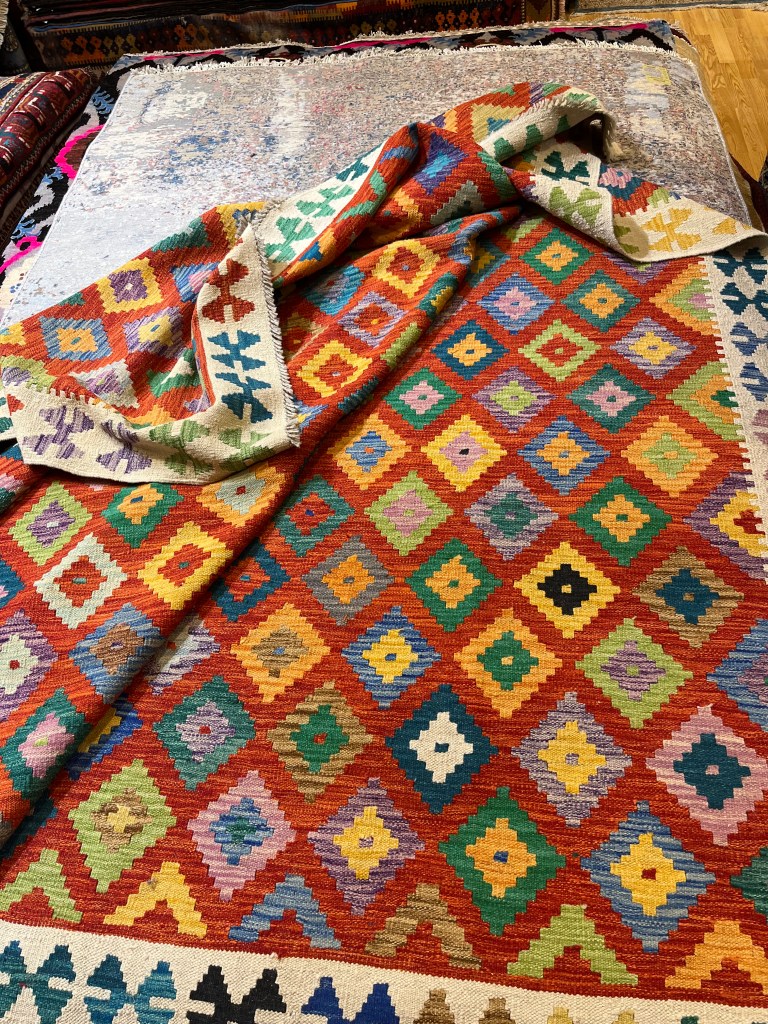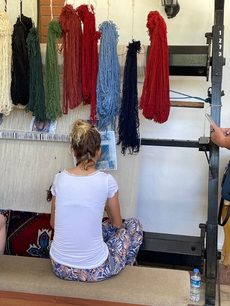 In Turkey, we went to a carpet cooperative. Turkish rugs were something that was always made in the home, most houses had a loom. Rugs were traditionally a woman’s dowery, passed down for generations. But like many ancient crafts, the younger generation has no time or interest in learning it. So the Turkish government is providing free eduction to anyone who wants to learn. It took a while to get the elders to share their designs and techniques but the number of weavers are growing again. Their rugs are hand knotted carpets, the more knots per square foot and the more colors in the design the higher the price. Some rugs take 3 or more women years to weave, others 3 to 6 months. They were beautiful, changing colors depending on how you looked at them. So many colors and designs. I was tempted but without a specific house to furnish, I couldn’t decide what I wanted. Also, I had already bought a rug in Athens.