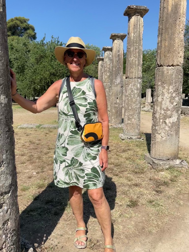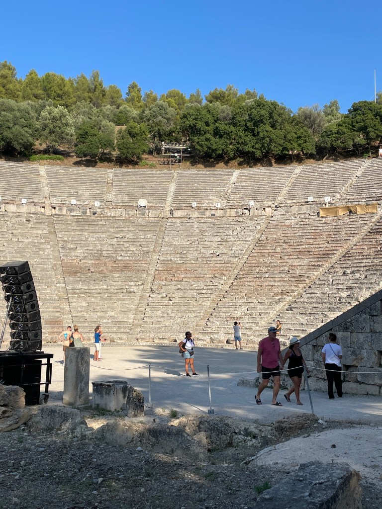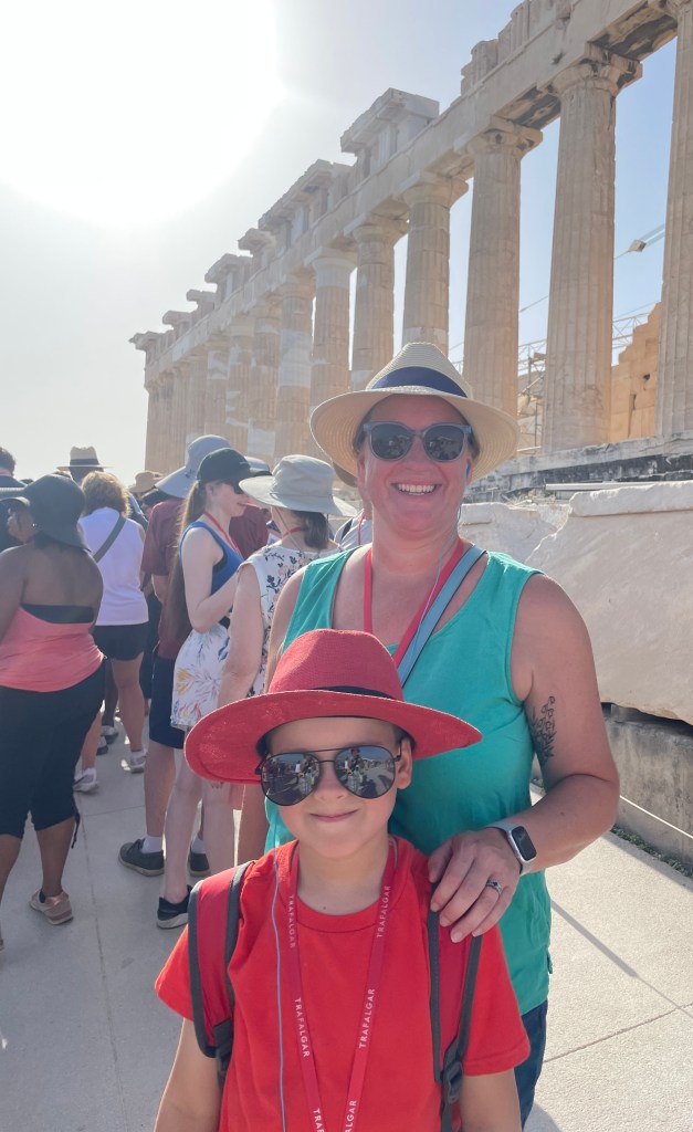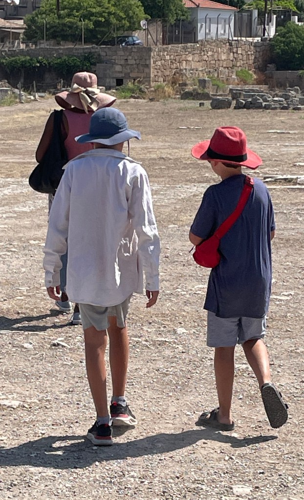 The first thing I have to say about Greece is – it was HOT, extremely hot, over 100 degrees hot. Anytime we caught even a little bit of breeze, we were very grateful. My daughter, Jane and grandson, Arthur met me here – his first international trip, and it was wonderful to be with them. We joined 44 other people on our tour, mostly from the US but also from Australia and South Africa. To Arthur’s delight there was another 10 year old in the group, Asher from Houston TX.
