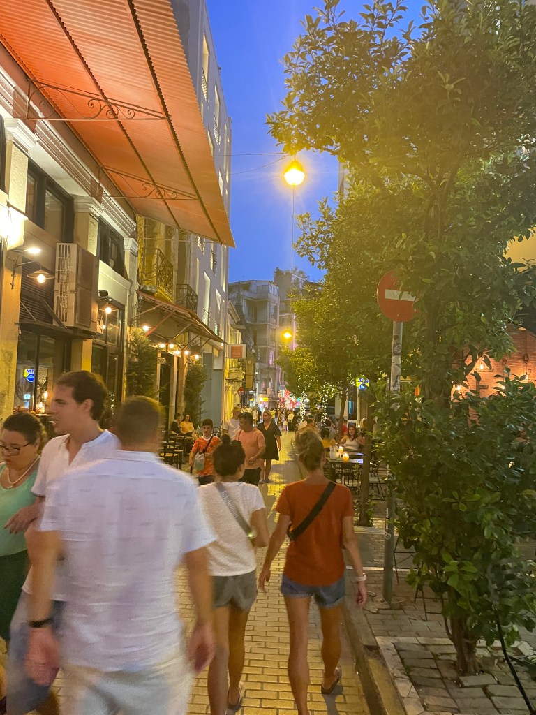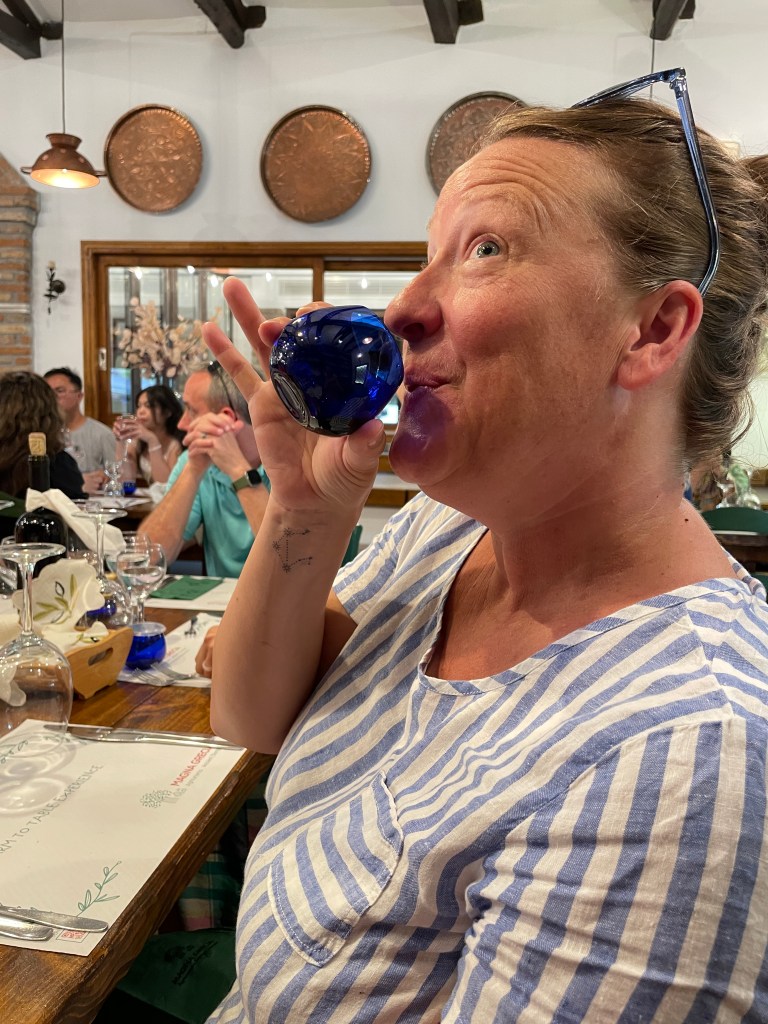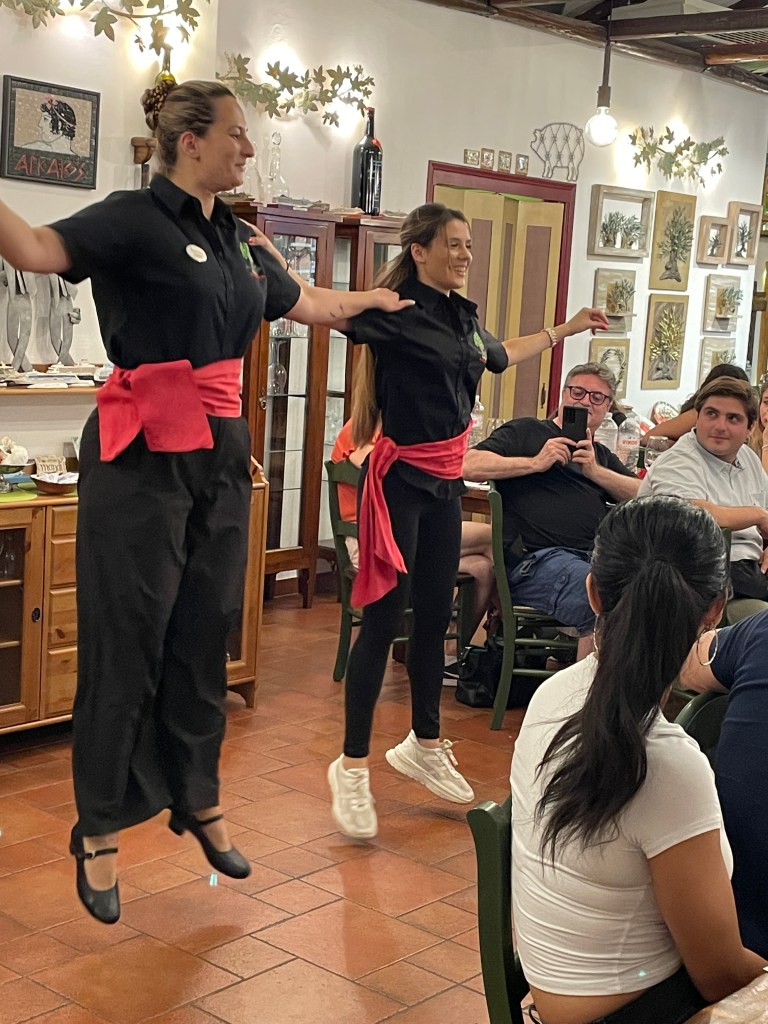 Arthur’s grandfather, Ray, gave him a chunk of change for his trip and when Arthur has money in his pocket, he wants to spend it. So I actually thank Ray, otherwise we would never had been able to shop as much as we did. We spend a lot of time in the Plaka in Athens – the old town shopping and dining district. We also enjoyed the shops in Nafplio, a small cute seaside city and Mykonos, on elf Greece’s many islands. We sampled all the traditional cuisine – gyros, souvlaki. Moussaka, eggplant dishes (me), stuffed vine leaves, spinach and cheese pie, tzatziki ,calamari, sea bream, orange cake and of course baklava. They often brought out a plate of watermelon at the end of the meal, so sweet and refreshing. At some of our restaurants we got so much food I thought I’d burst and I didn’t even eat everything. Many of the restaurants provided us with ouzo, mastika or grappa to taste. They also entertained us with Greek music and lively Greek dances.