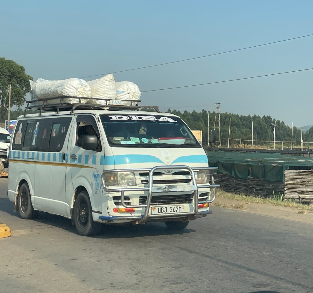 Then come the boda bodas. Basically privately owned city buses, really mini-vans. Stick our your hand and they will stop for you and your stuff if you have any. They stop quite often, especially when in town. They’re usually fully loaded with people and products on the rack on top. Add to that the small trucks that go from town to town picking up produce, livestock, lumber, gravel – really anything the villagers are selling. They have sides about 4 feet high and then an open metal structure another 5 feet and over the top. If they’re not filled completely with bananas, they might have cows or goats on the bottom, produce piled above that, maybe a tire or two and then 6 to twelve people sitting on the sides or the top. There are also larger trucks, little smaller than a semi that also picks up items but these are to be sold in the larger cities or other countries. And then there are the tourist vehicles – jeeps and vans, and a few cars thrown in for fun.