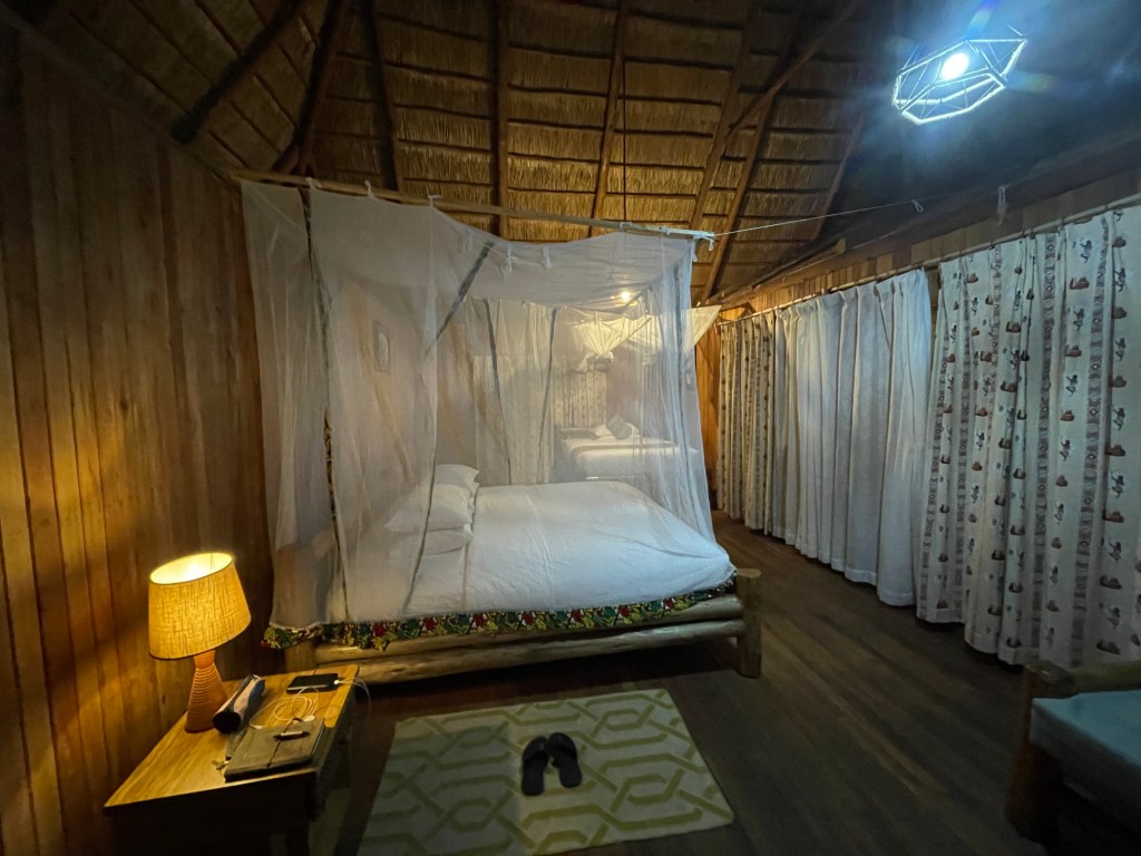 I enjoyed the beautiful lodges I stayed at, especially the Birdnest Lodge on Lake Bunyonyi and the Elephant Hab near Queen Elizabeth National Park. It was my first time to sleep under mosquito netting.