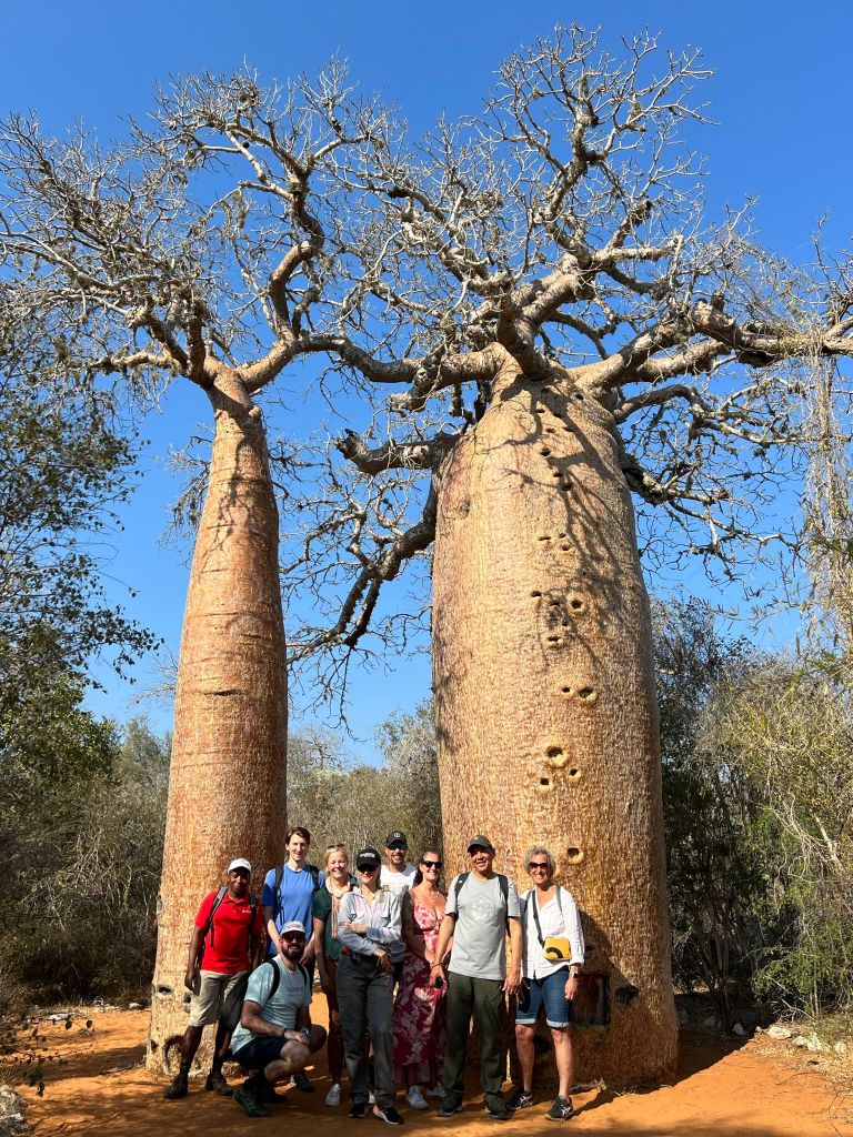We saw baobabs that were 700, 800, 900 and even 1,300 years old. I didn’t know there were different varieties. At two different reserves, our guides showed us dozens of plants used for medicinal purposes – for stomach aches, tooth aches, diabetes, high blood pressure, arthritis, back pain and the list goes on. In the rain forest palm trees had leaves over 10 feet tall and plants that towered over our heads. And the flowers, even in mid-winter, were fabulous, from tiny orchids hidden in the rain forest to big trumpet flowers lining the roads. There was a profusion of color as we drove and hiked – red, purple, pink, yellow, white, and orange amidst all the green.
