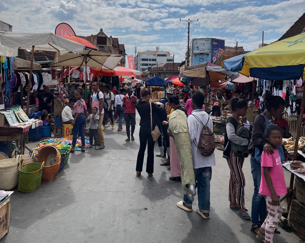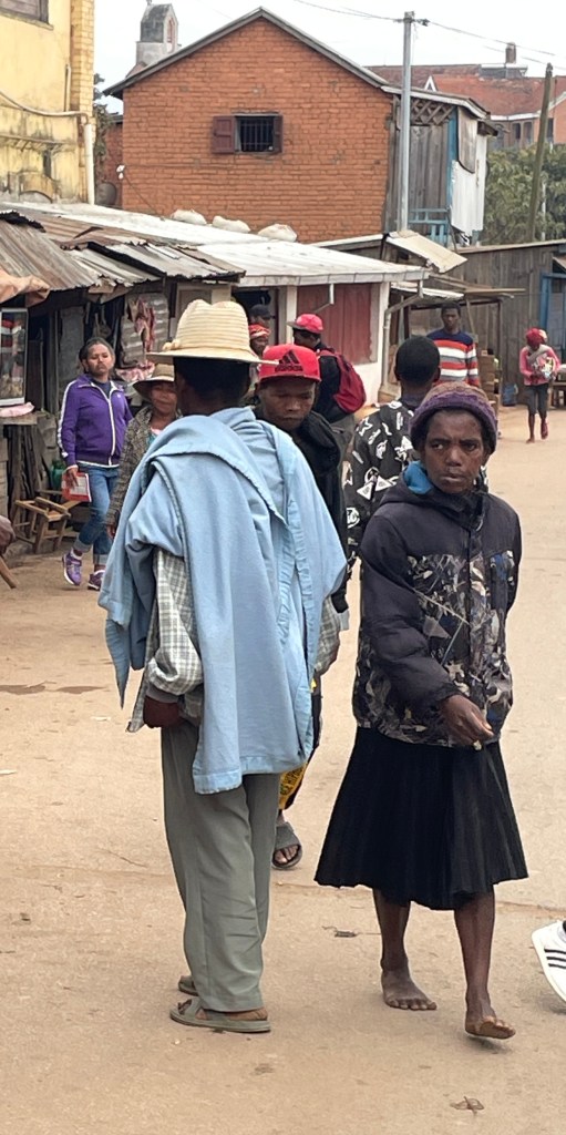 I was surprised when the first people I met from Madagascar at the Maputo airport looked like Polynesians – short, light skinned and long dark hair. And even more surprised when I arrived and the majority of the people were similar. A big swatch of Madagascar, including the capital, was settled by Malaysians and then later Indians joined them, so their slight builds and stature, and long straight hair evolved from that ancestry. The southern area was settled by Africans and the north by Arabs. So there is a mix throughout the country. Our guide, Barnabas was around 5 feet tall, a dwarf compared the the tall Europeans of our group.