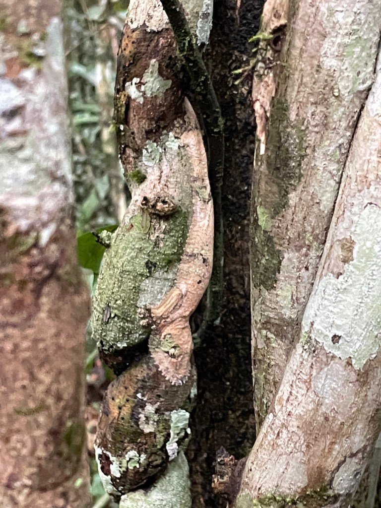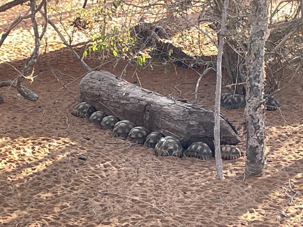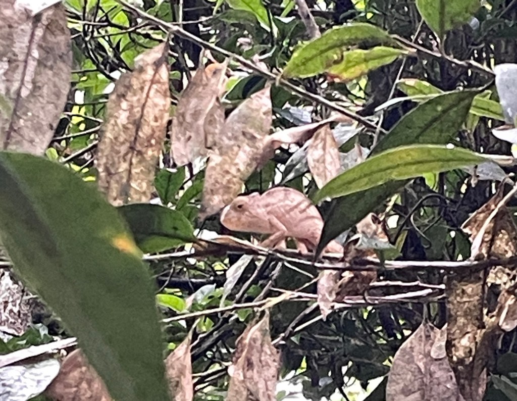 I didn’t know that chameleons and geckos were so cool. I’m not always sure how our guides spotted the lizards, as they blended in so well with their surroundings. In fact, if I hadn’t been able to blow up one of my pictures to see the eyes of one gecko, I would have told you that is was not there, that the guide was lying to us. We watched one chameleon change his color as he moved through the trees. Small ones, big ones, green ones, brown ones – so many varieties. One of the most interesting insects was a giraffe necked weevil – a tiny, bright red bug with a neck up to twice the length of his body. And a millipede over an inch wide and about 4 inches long, which curled up into tight little ball when the guide picked it up. And to Zios’ great excitement, we saw two boa constrictors who emerged recently from hibernation. We also saw thousands of tortoises rescued from poachers or families who collected them as pets.