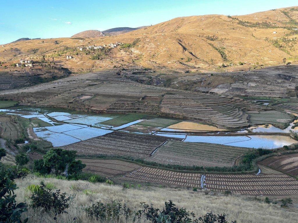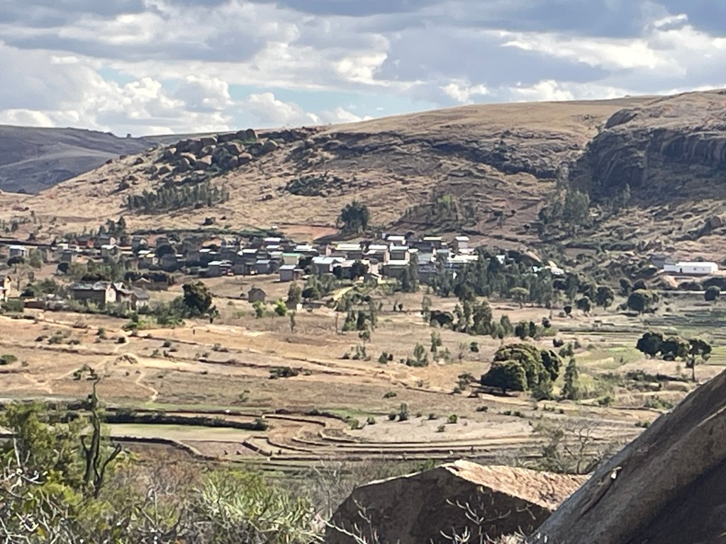 We traveled over 750 miles through rural and remote areas, villages, towns and the capital city of Antananarivo. Only about 20 percent of the 29 million people who live in Madagascar live in urban areas, the capital is home to 4 million people and another 1 million plus live in towns scattered across the country. Madagascar is the 4th largest island in the world and is slightly smaller than Texas. Its terrain is very diverse. We traveled from the seaside on its south western coast through savannas with amazing and beautiful out cropping of rocks and low mountain ridges, through rain forests high in the hills, and beautiful valleys filled with rice, cassava, beans, squash, corn, carrots, cabbage, and so much more, to the mid-eastern region. We hiked through the rain forests, through rice paddies and villages, through a wide savanna canyon with hidden oases, home to cold water pools, and along the beaches of the Indian Ocean. It is a beautiful country filled with exotic flowers, interesting animals, unique trees and amazing plants. There are zebu everywhere, a sign of wealth for the Malagasy people.