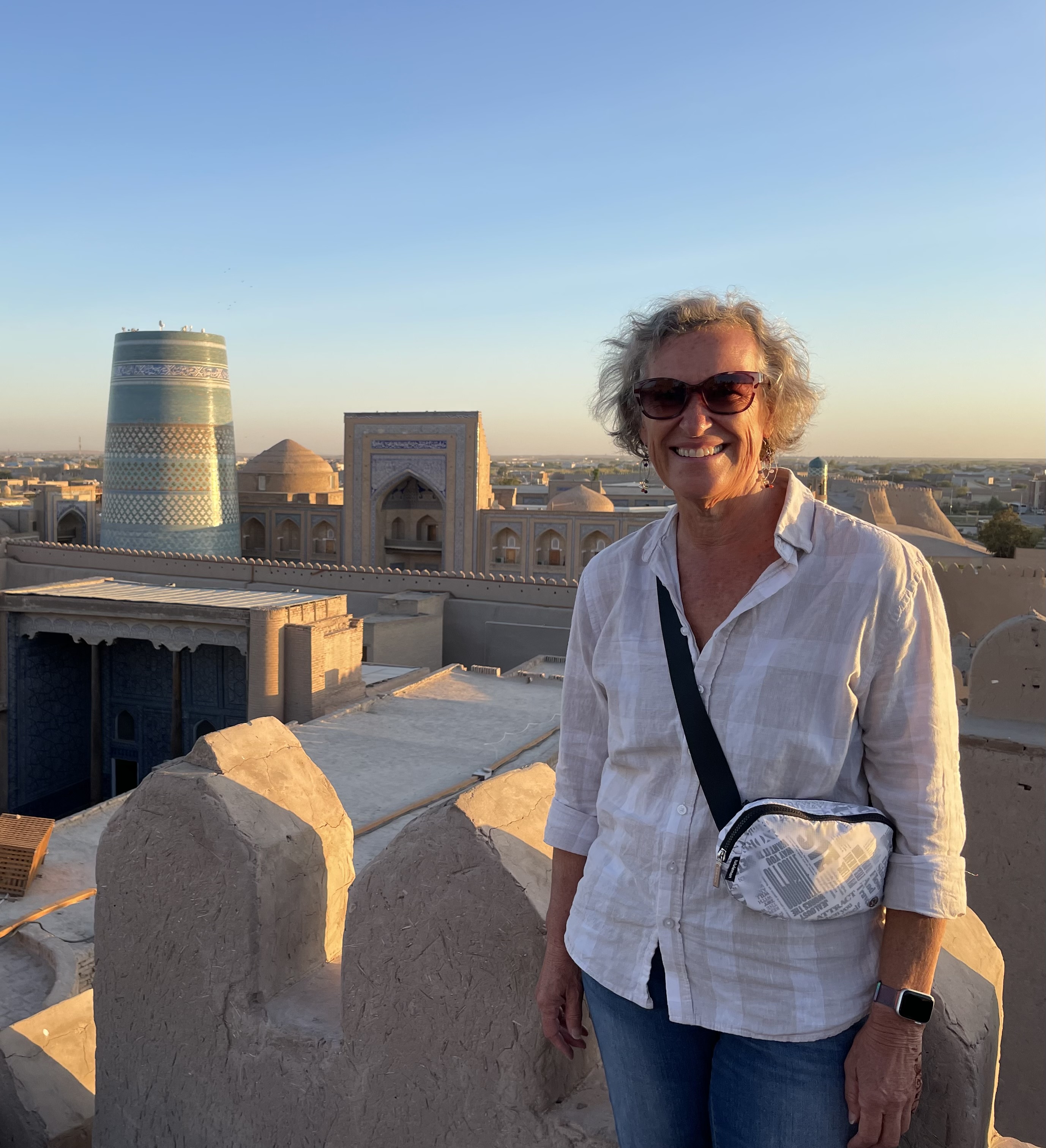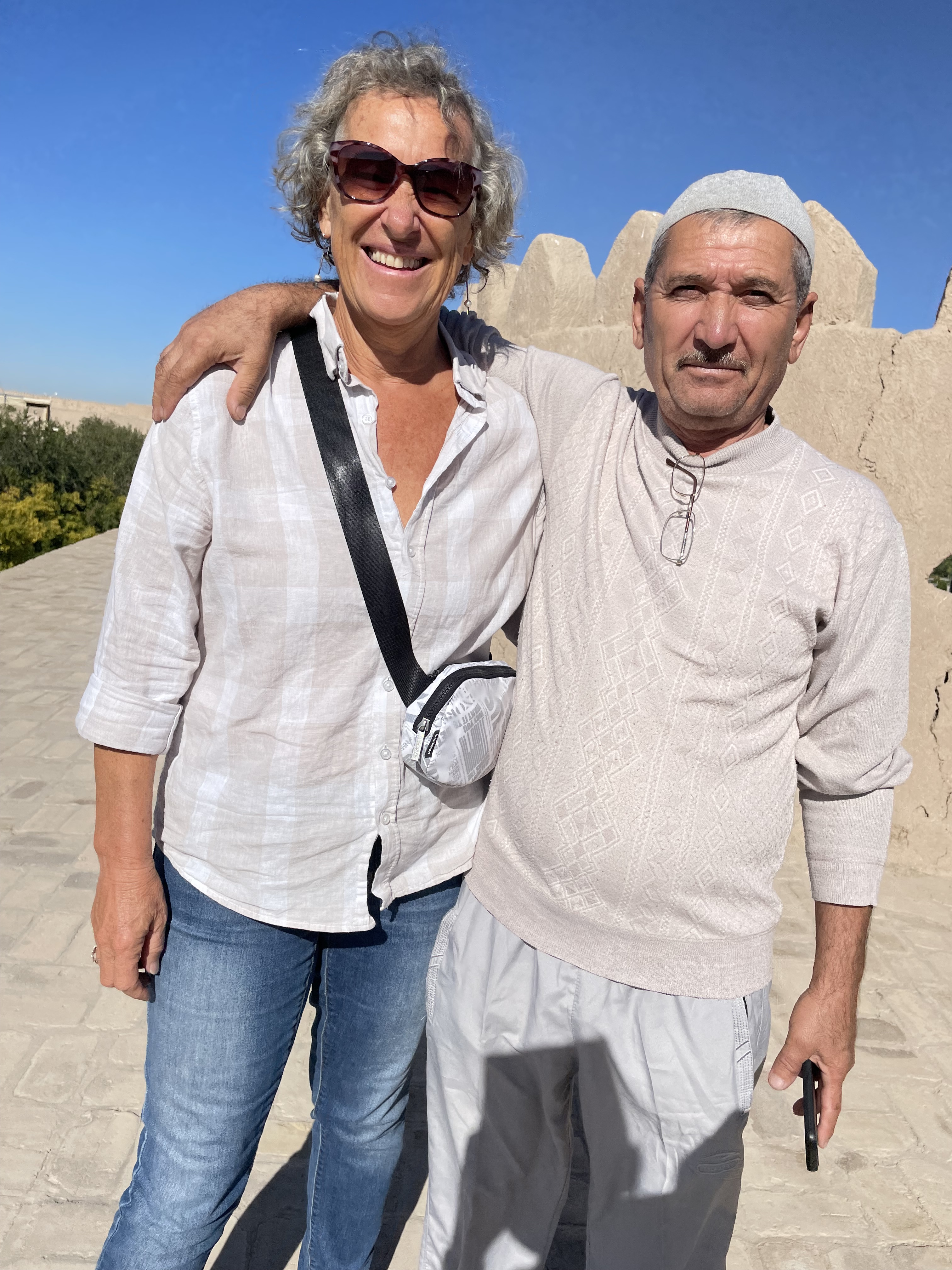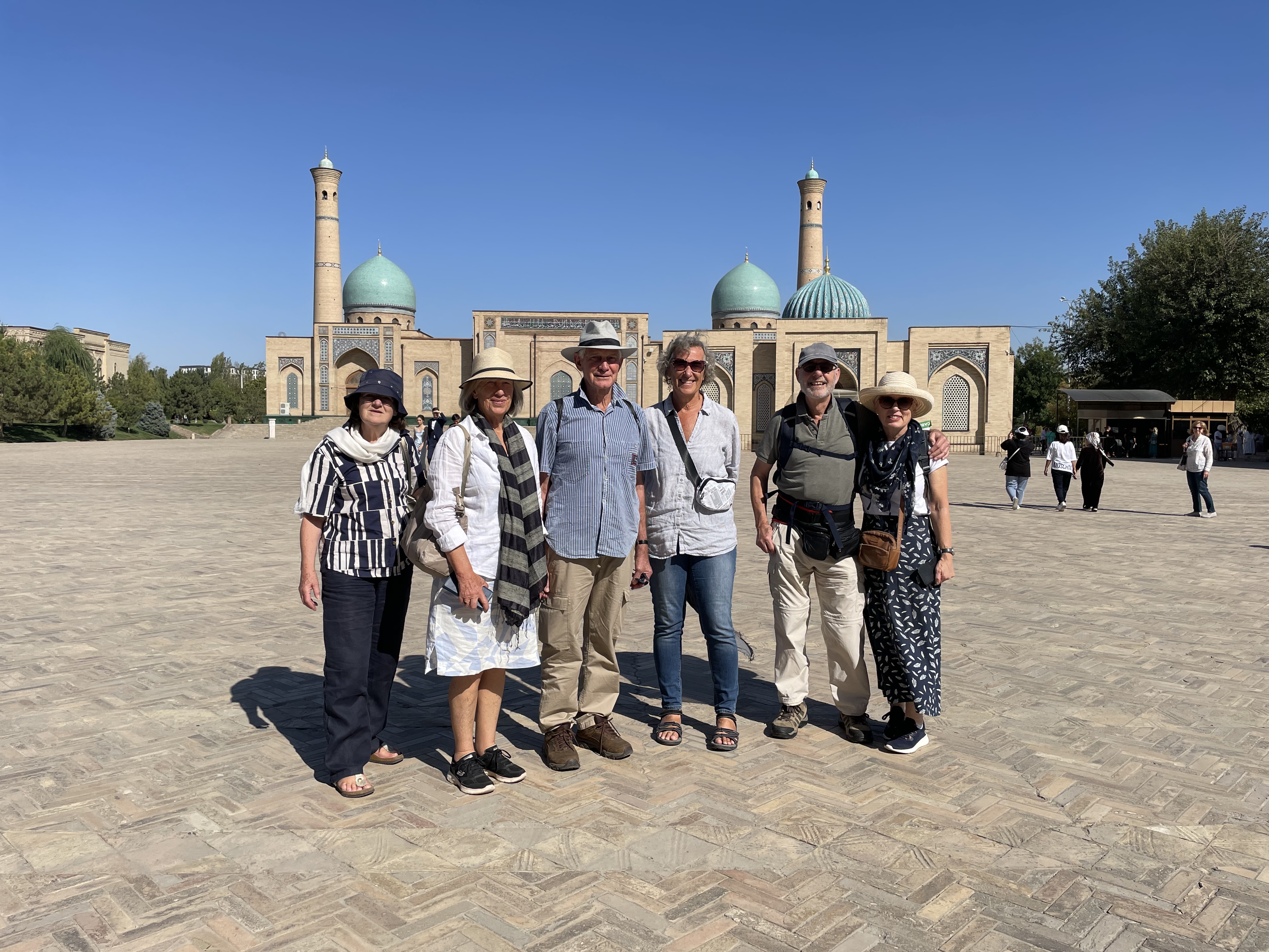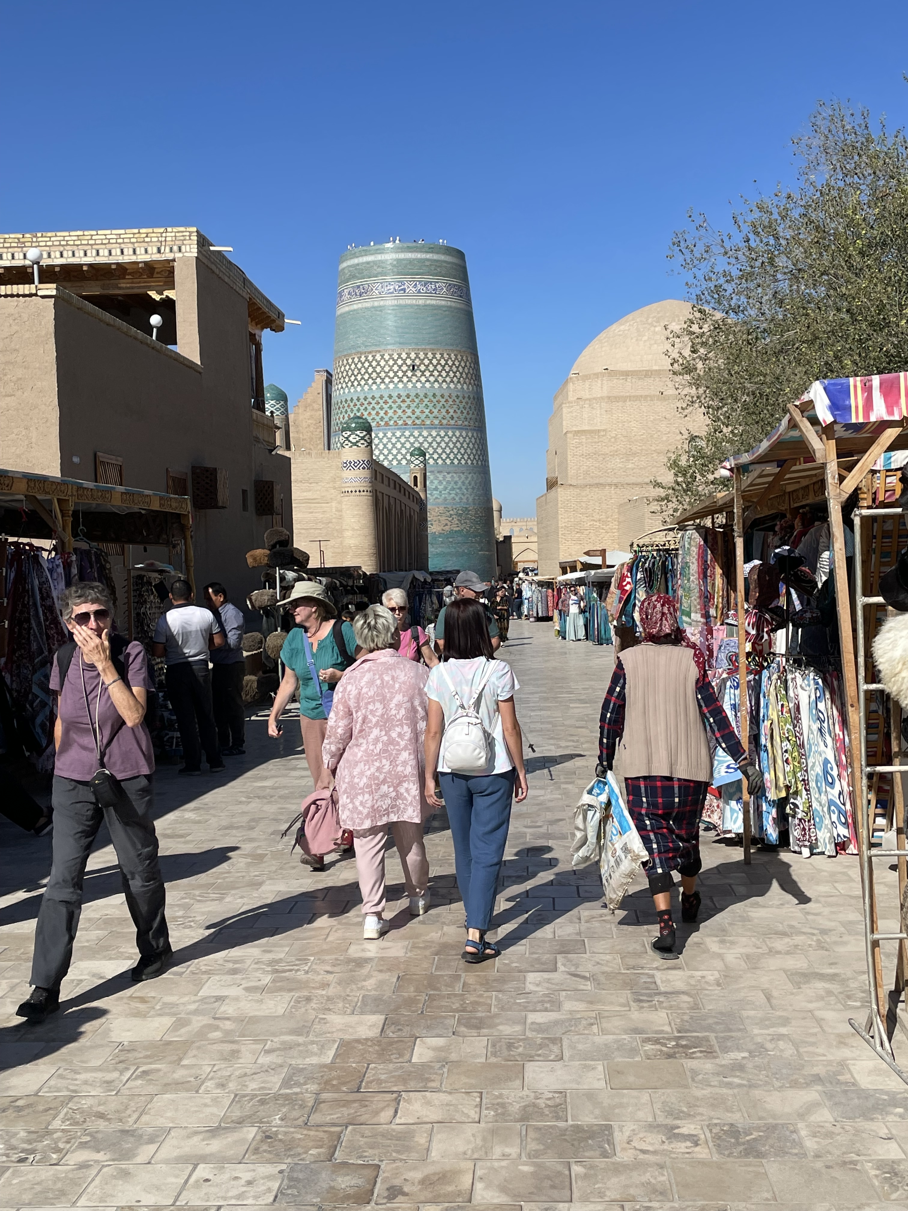 My tour group was wonderful, made up of Miles and Nicola from New Zealand, Katherine from Scotland, Brigitta from Switzerland, and Olwen, Guy, Kate, Nick and Gil from England, though Gil originally hailed from Australia. Ages ranged from late fifties to early seventies. Our guide, Shukhrat, was excellent, he loved sharing the history and culture of his country. On long bus trips, he would tell us stories about everyday life and Uzbek heroes. We visited four cities, Tashkent, Khiva, Bukhara, and Samarkand- with stops in-between, as well as spending a night in the desert in a yurt.