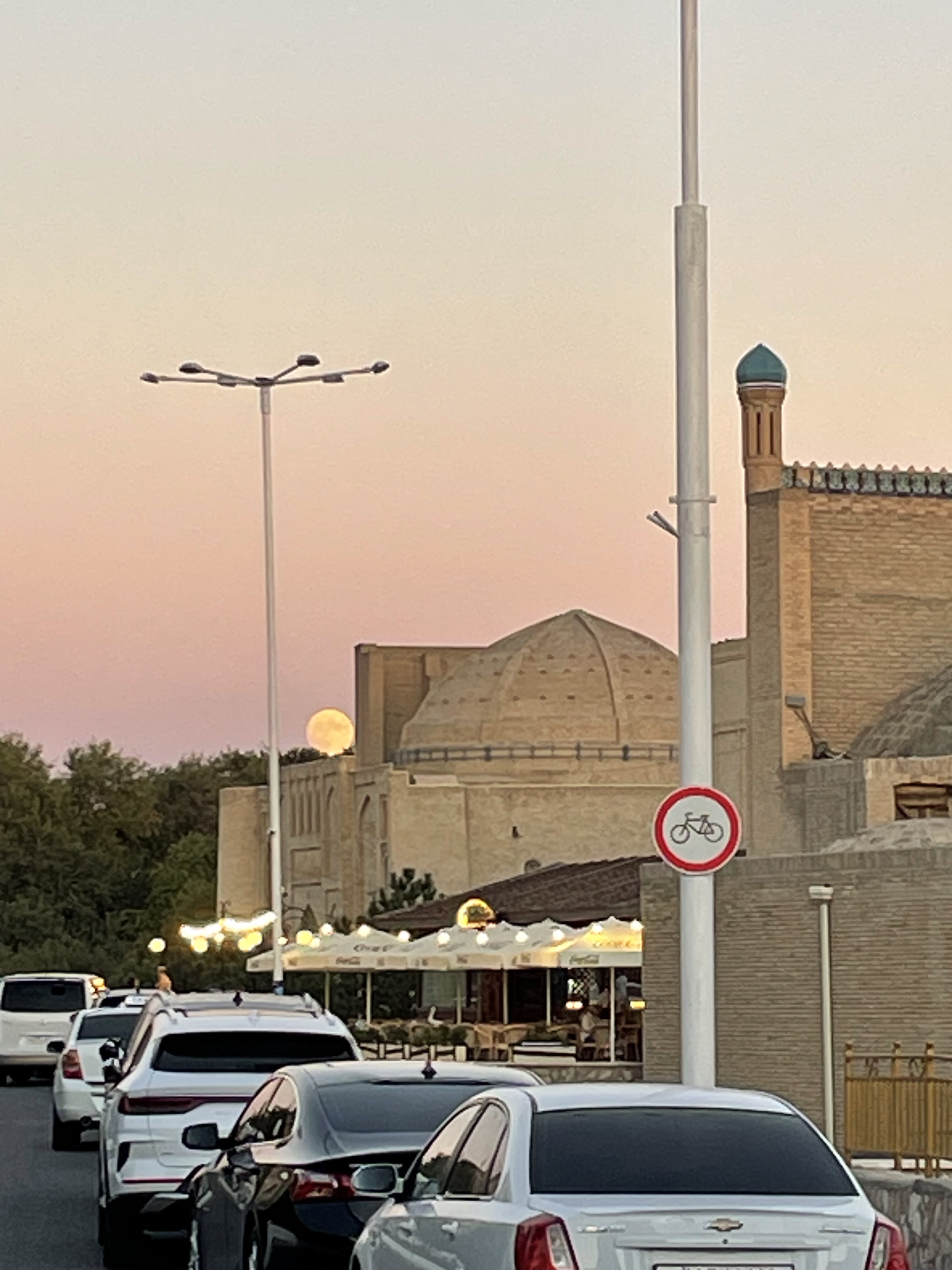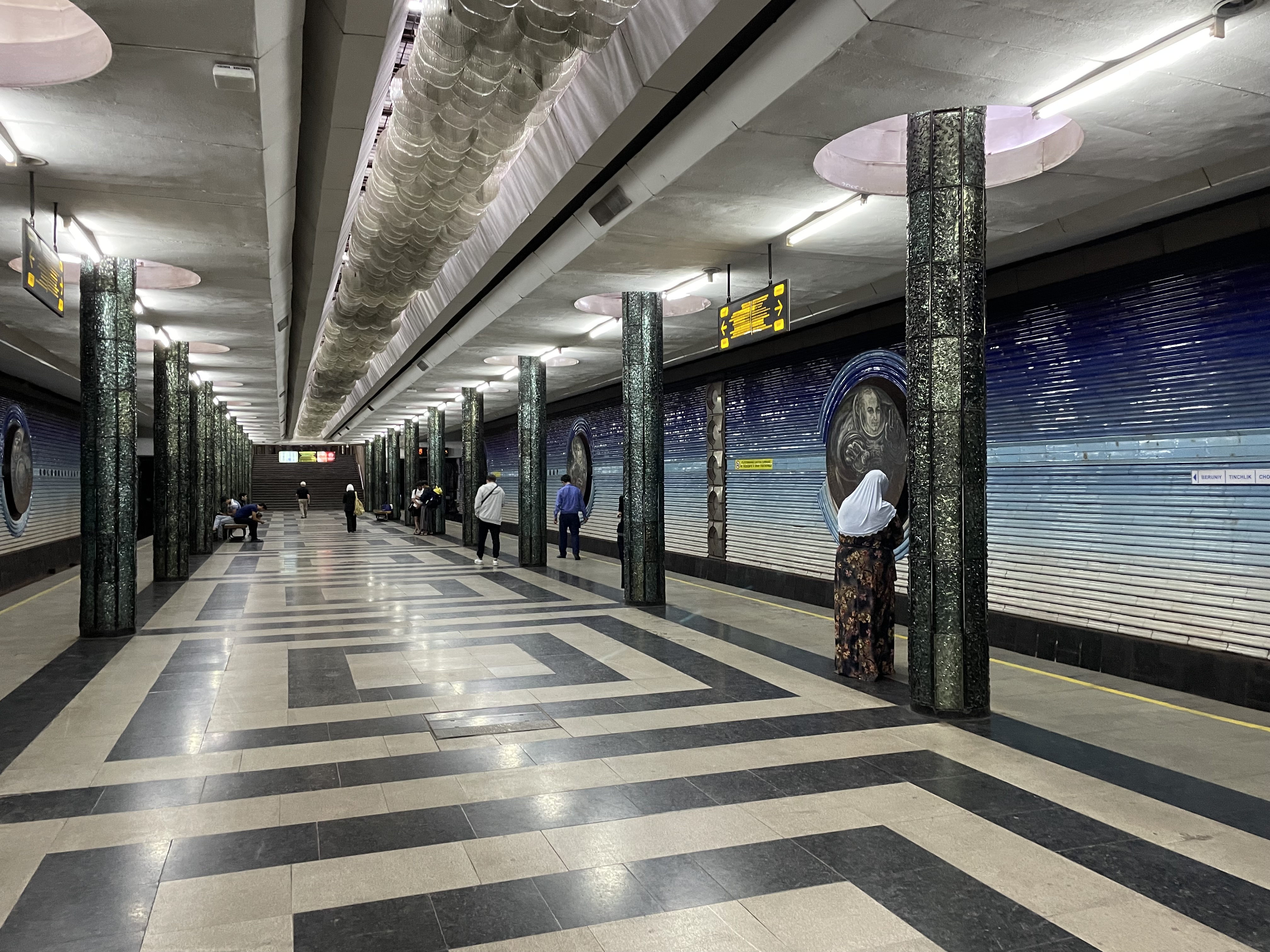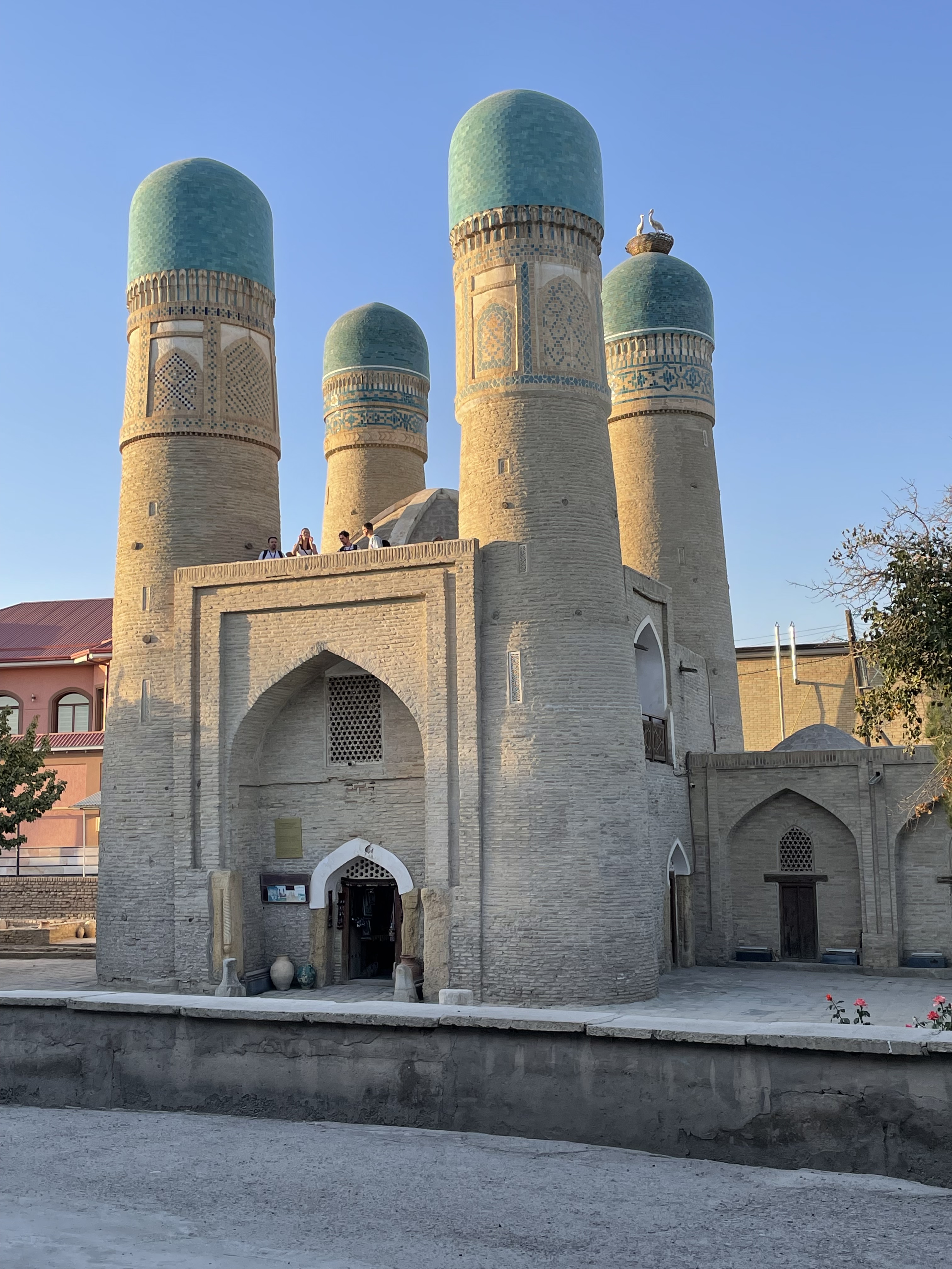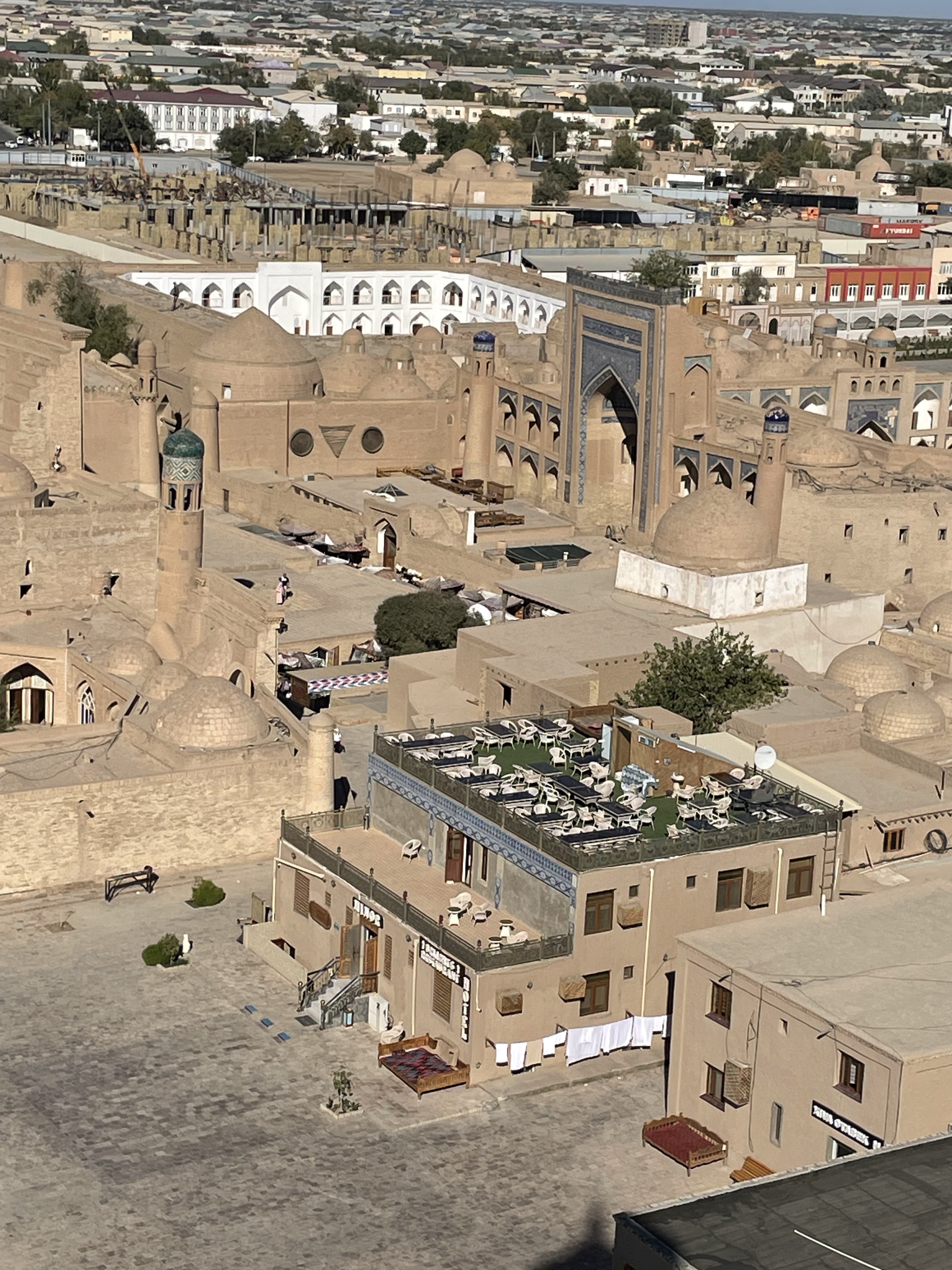 A madrasa is a school, built with a large entry way with gathering/lectures rooms on either side as you enter and then a big courtyard surrounded by small cells where the students stayed. We stayed in a madrasa turned hotel in Khiva, luckily ensuite baths had been added. The doors to most of the cells were very low – so we had to duck to enter our rooms – built that way because wood was expensive, it helped regulate the temperature inside, and you had to bow to the owner of the house as you entered. The old towns of Kiva and Bukhara are walled cities, the madrasas and caravansaries converted to hotels or artisan workshops and the mosques and palaces museums. Both were encircled by larger, modern towns. The sites in Tashkent and Samarkand were surrounded by the bustling modern metropolises they have become. All of the cities were filled with the things you would expect in any modern municipality- new high rises, residential areas, strips of shops, bus stops, subways, taxis, billboards, traffic lights, packed streets with beeping autos, people bustling to work and shops, as well as Soviet era apartment blocks and office buildings- they were part of the USSR for approximately 70 years.