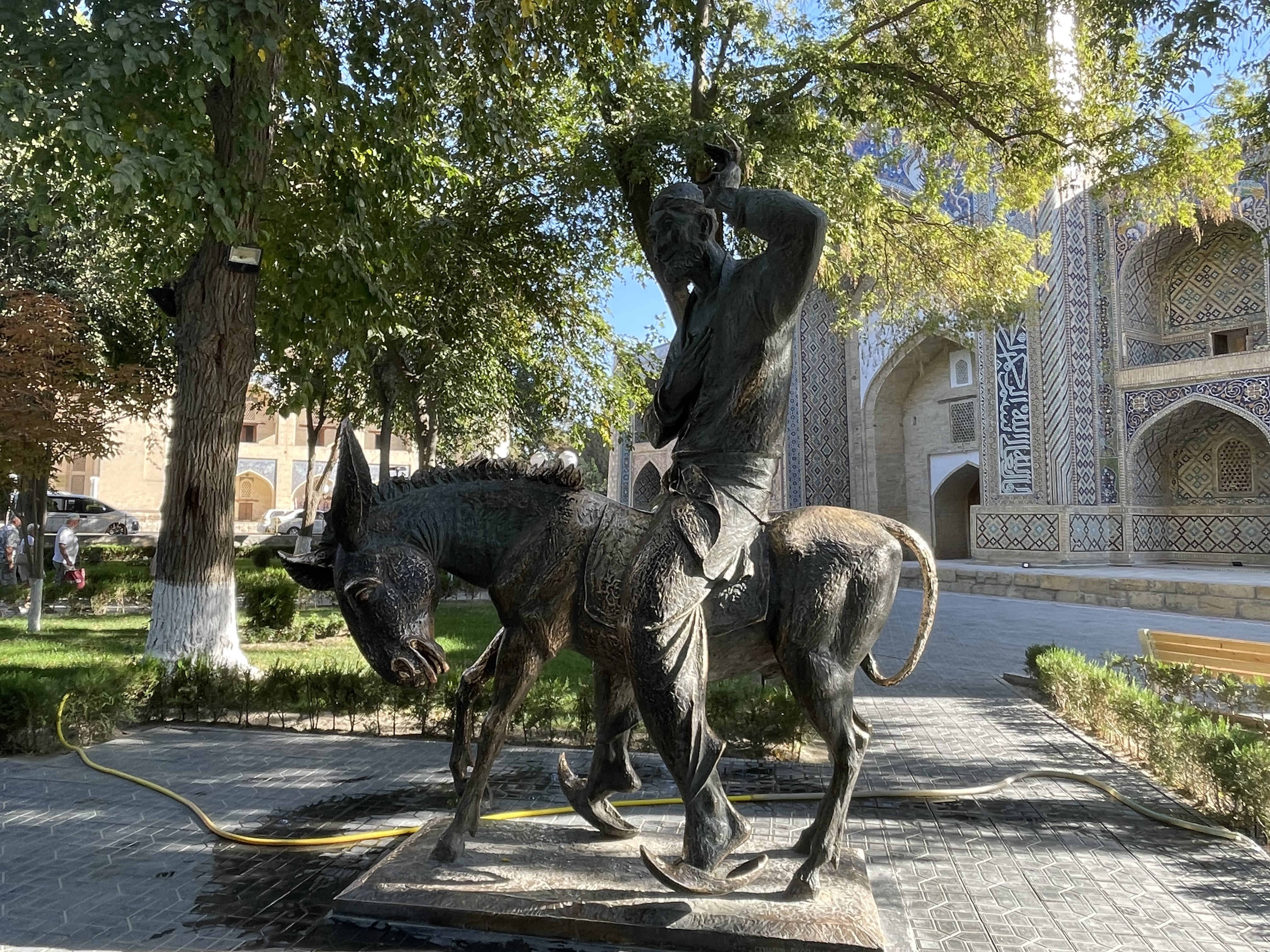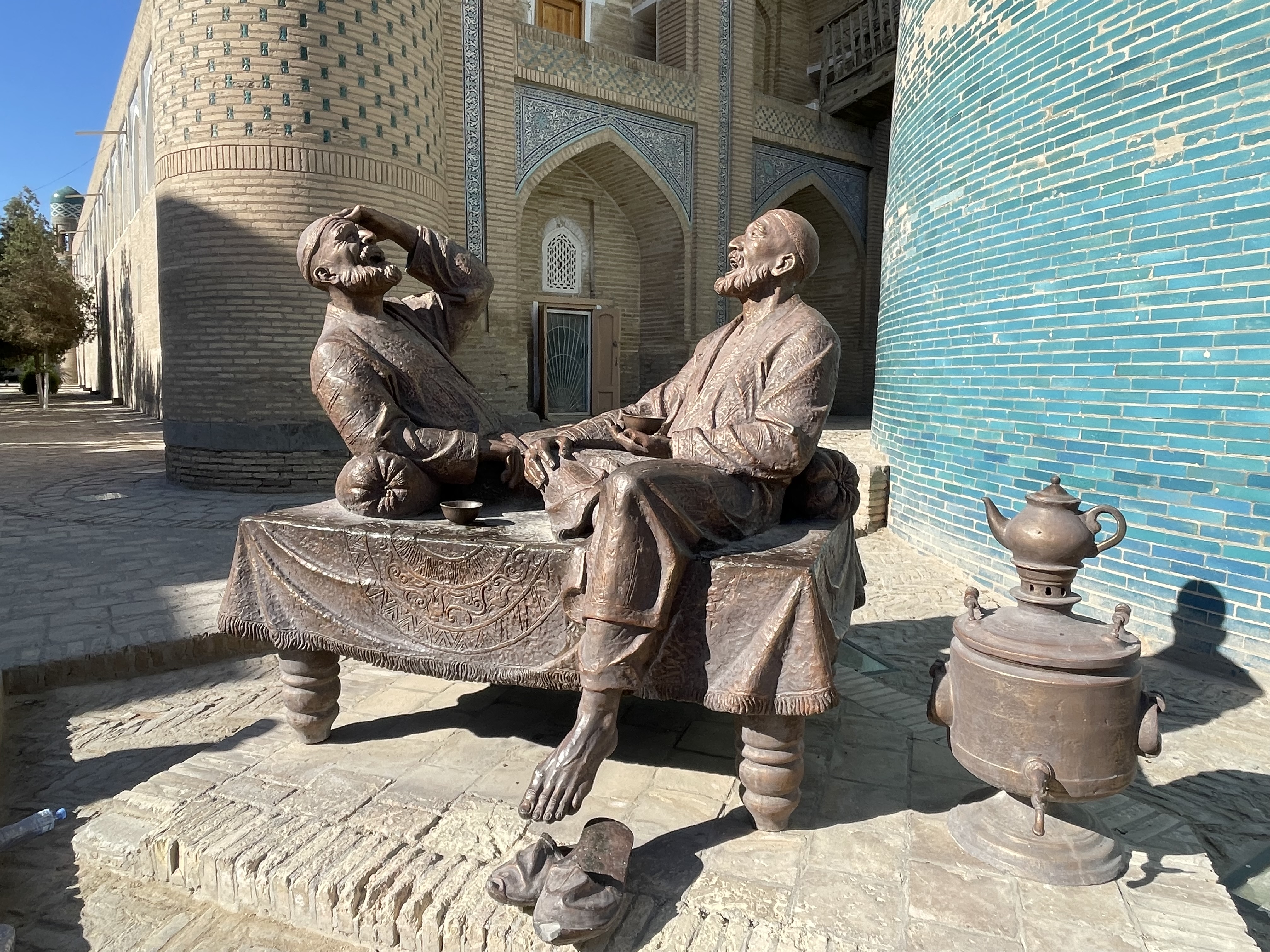 I really do confess my ignorance here. Of the seven ‘stans’ I was really only aware of Afghanistan and Pakistan, I may have heard another one or two mentioned but would not have been able to tell you that Uzbekistan existed before this trip, yet it played a major role in world history. I believe my world history class in high school pretty much covered European history, touching on Asia, Africa and the Middle East only when they were colonies of European countries. Uzbekistan was in the middle of the Silk Road – a major trading route for many centuries, one of it’s leaders, Emir Timur, created one of the largest empires in history in the 14th century, and his grandson was a renown astronomer. The four cities we visited were all major trading centers of the Silk Road, a place of refuge after crossing deserts and mountains. The old towns of Khiva, Bukhara and Samarkand are all Unesco World Heritage sites as well as Uzbeki sections of the Silk Road itself. It was suggested we think of these towns then, like Dubai is now, major business hubs.