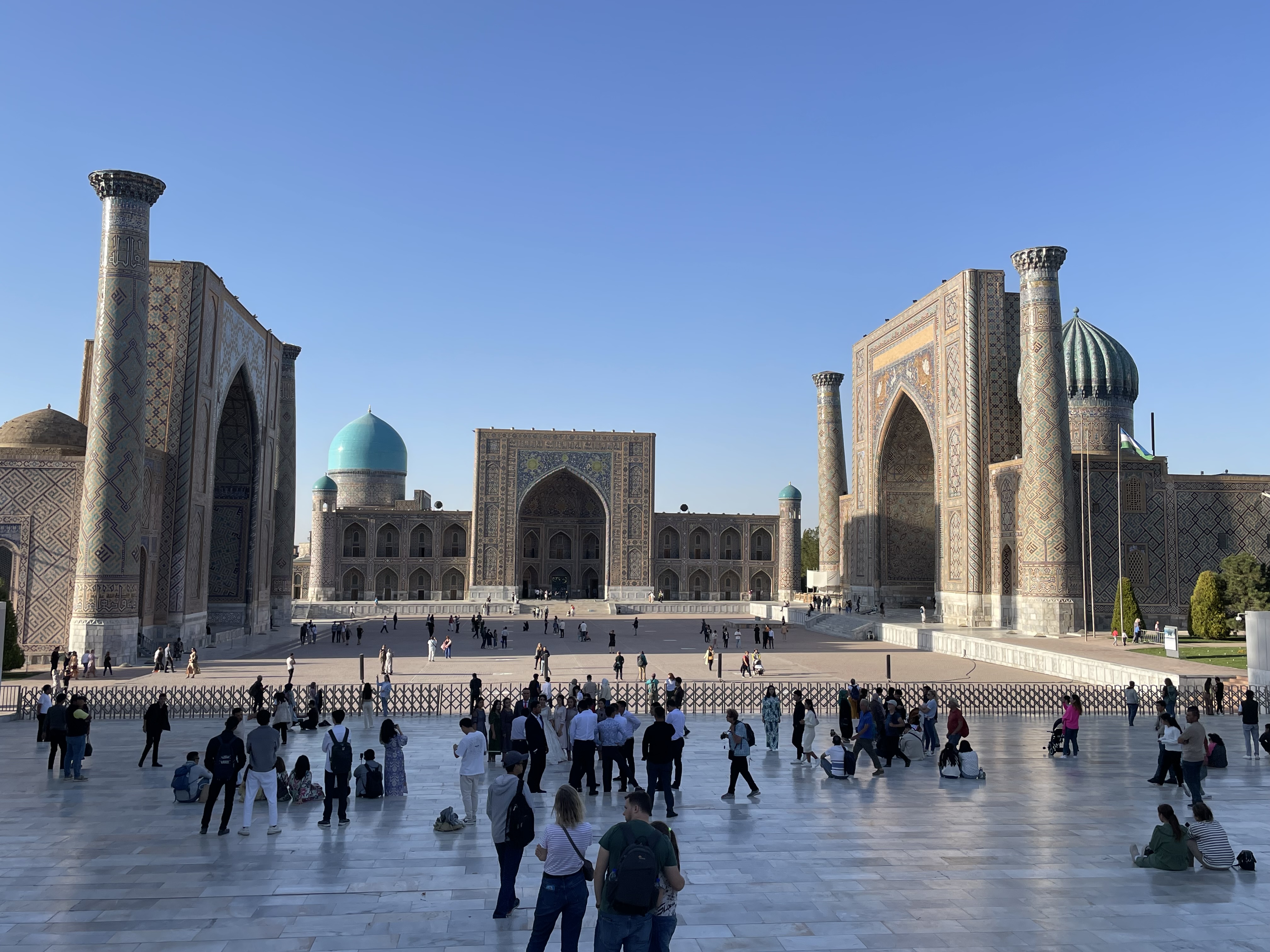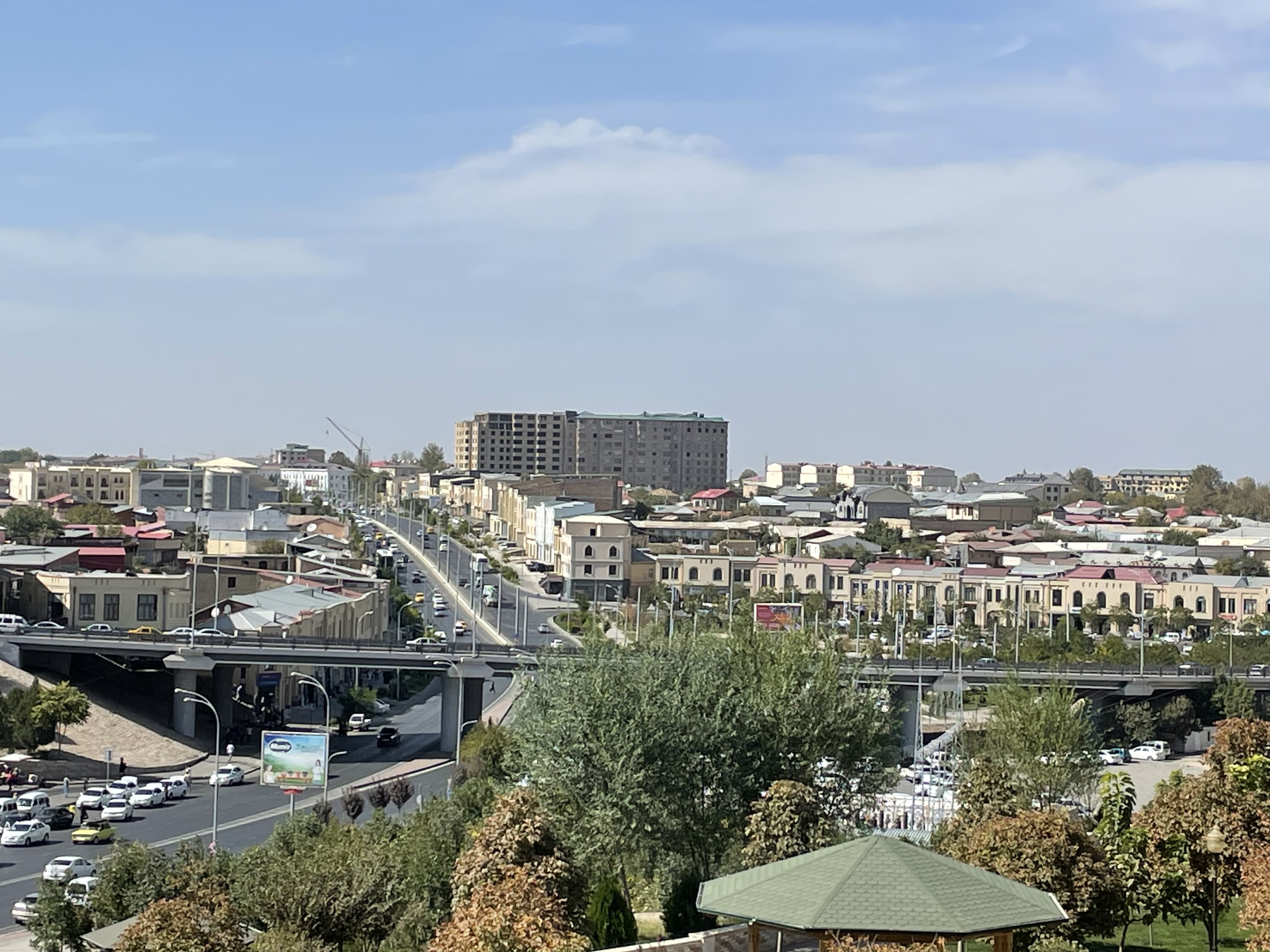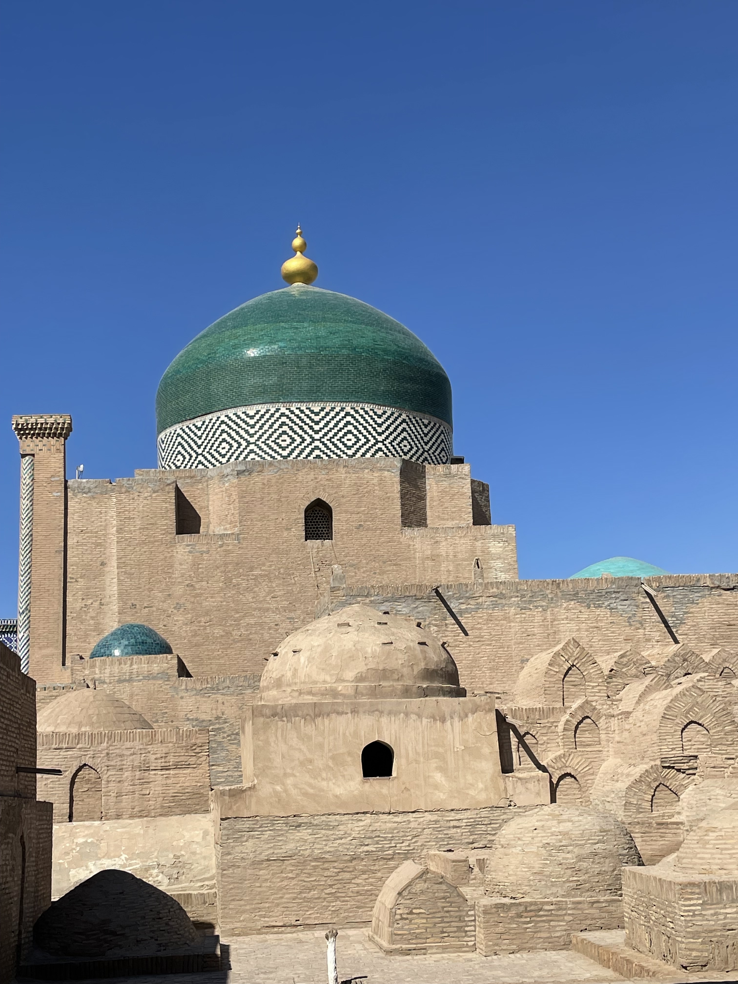 Once their economy was based on cotton, but they have been diversifying their crops for a while now, as cotton crops use a lot of water. The Aral Sea was a major source of water but has shrunk by 90% since the 1960’s. As it evaporates, it is putting a lot more salt in the air, causing more damage to the tiles on the mosques, madrasas and mausoleums. Both gold and uranium are mined in Uzbekistan. The dissolution of the USSR was 50/50 good to bad, said my taxi driver. Under Soviet rule, a lot of infrastructure was built – roads, water and electrical systems, hospitals, schools, etc. And everyone had a job but things were rationed and upward mobility and some freedoms were limited. Schools are free, compulsory and are considered good. Health care is also free though medication is not and that can be very expensive. The state owns all the land, so if they want to build something and your house is in the way, they move you to another location.