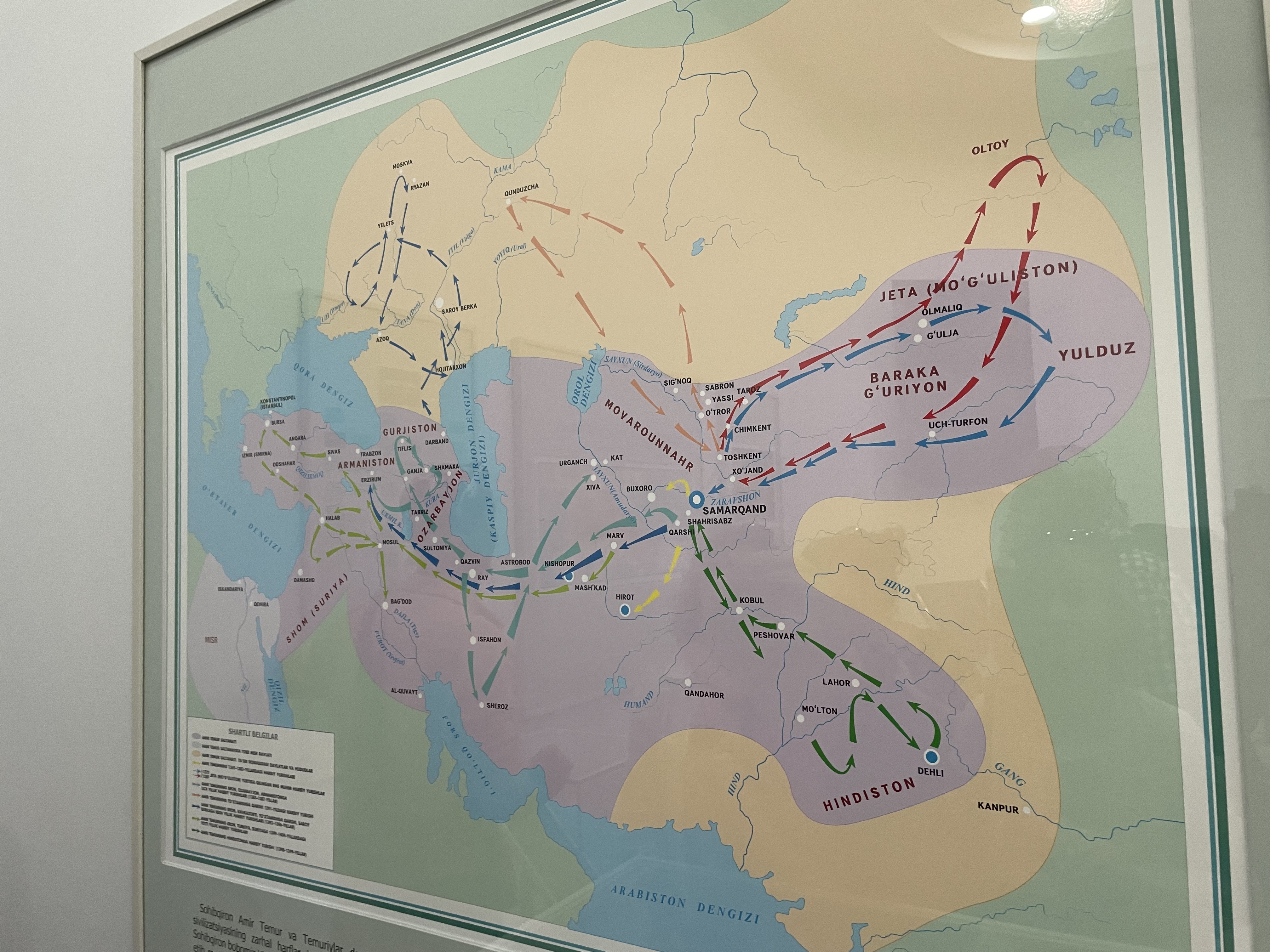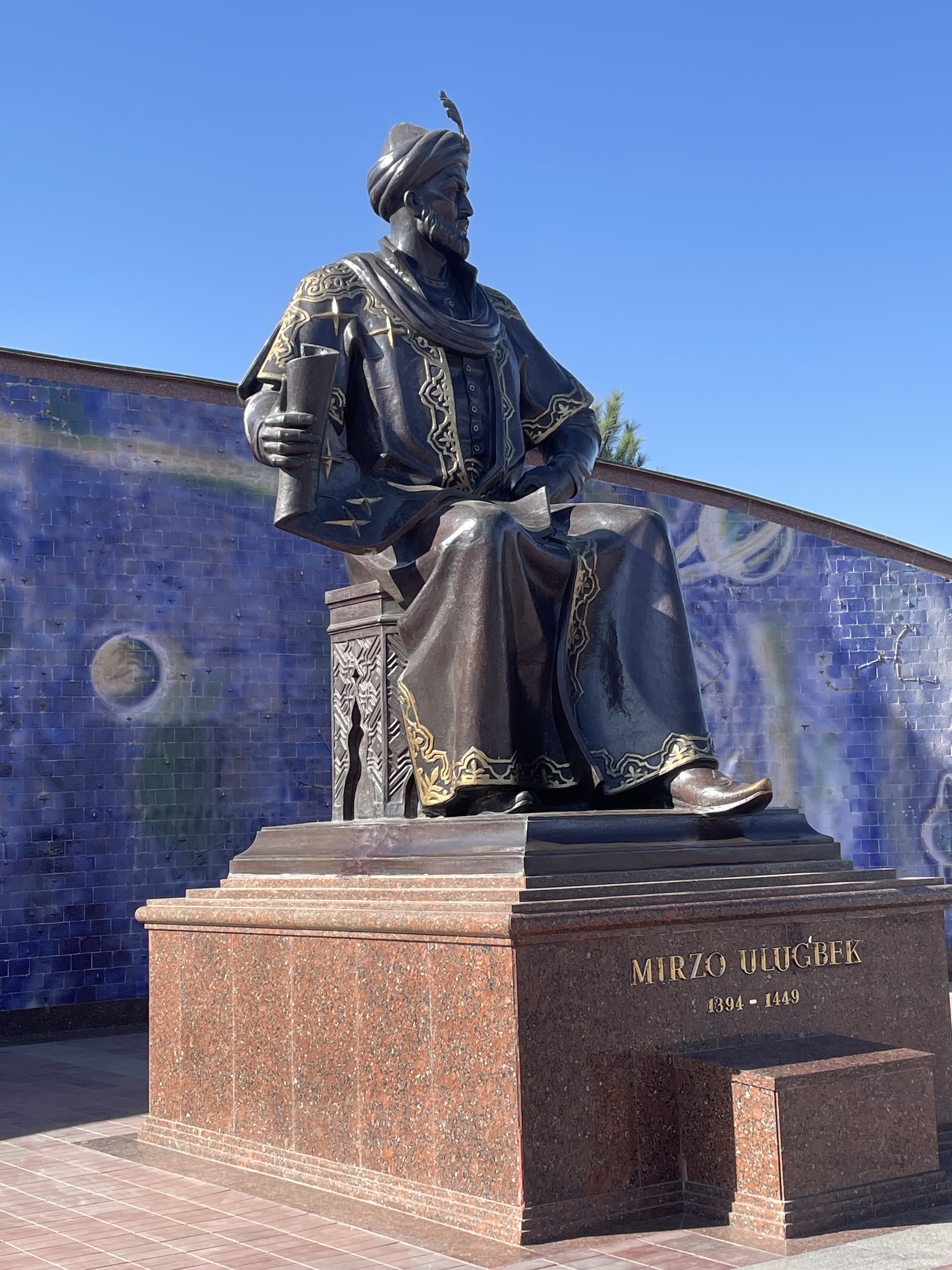 Emir Timur or Tamberlane – a despised nickname meaning Timur the lame, began his military career at 14. He led a band of his friends and pushed Mongols intruders from his home town. He didn’t stop there, but eventually subjugated countries across the region to create one of the largest empires in history. He was planning on going further and conquer China but was killed in action before he could. Life would have been very different today if he had been successful. He wanted to be highly educated but ruling and battles kept him from his studies. He did however bring numerous scientists, scholars and artisans to Uzbekistan, making it a center of learning in Central Asia. None of his four sons were able to succeed him, due to death, accidents or temperament. Instead his grandson, Ulugh Beg Mirza, the great astronomer, did. Not a strong ruler, much of the Timurid Empire was lost during his reign but the country flourished and was peaceful. Once, Uzbekistan was the richest area of Central Asia. They were settlers, not nomads, there was water here and sun – all ingredients for a prosperous society. Today they have 300 days of sunshine and our guide would be glad to share some with any country that needs it. It can get to 120 degrees F -50 C here and as cold as 10 below F – minus 23 C.