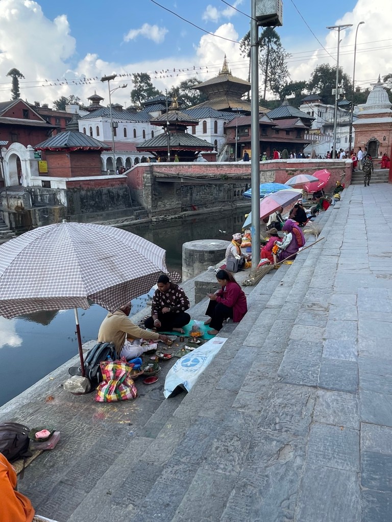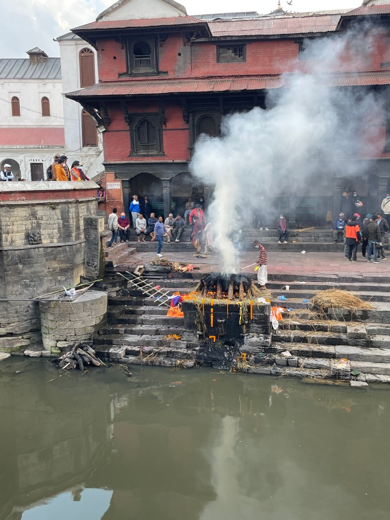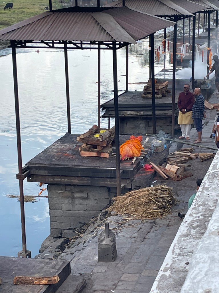 I also went to the Bagmati river, a sacred river in Kathmandu to watch the cremations. One body was already burning, the man who tended to the fire adding ghee on the areas that take longer to incinerate, so the body would be consumed completely. One person was laid out, covered in a orange cloth, ready to set onto a pyre. A remains of an older woman was being purified or washed with the water from the river, only men attended the body though, I’m not sure why. Once done she was carried on a bamboo stretcher to one of the ‘docks’, set up along the river, wood piled up ready to receive the corpse. Three more bodies lay waiting to be purified. The walkway and concrete steps leading to the river was filled with people and across the water, where I was, another group observed the rituals. A little further down, astrologers sat doing readings for anyone interested. I considered it, but there was only one that advertised he could do an English reading and he was already with someone.