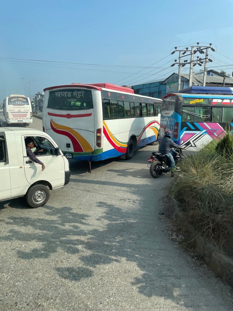 The experience that that truly shouted “you’re in a developing country” was my bus rides to Chitwan and Pokhara. The first ride was supposed to be five hours, but actually was almost 7, on a luxury tourist bus. True the seats looked like recliners but they weren’t that comfortable- no back support at all. I had to fight for the window seat I was assigned. Then we proceeded on a highway that was under construction for the whole 170 km or 100 miles, graded down to dirt and rocks so that we were bounced up and down the entire trip. The roadwork created traffic jams most of the way, so we constantly stopped on a dime and were thrown forward in our seats. The route was down a mountain, the road a series of s curves, so we were also tossed side to side on top of the up and down and front to back. I was so sick when I got off the coach, I threw up five times over the course of several hours, skipped lunch and dinner and slept for 12 hours. After the first ride I almost didn’t take the second one, but my guide convinced me it won’t be as bad, and it wasn’t quite as horrendous. At least I didn’t get sick. But the road was also under construction so the jostling continued and it took longer than expected, another 7 hours. And my pants were filthy from rubbing up against the wall of the bus. Taking pictures on the coach was a challenge as well. As soon as I get a shot lined up we’d serve or bounce, a truck or bus would speed by, or a tree or bush would block the view. Both buses were packed, with the local population going on vacation or visiting family, etc., seemly happy and content with the service. I opted for a plane ride back to Kathmandu, which was delayed almost 3 hours, but was worth it to avoid another seven+ hour bus ride.