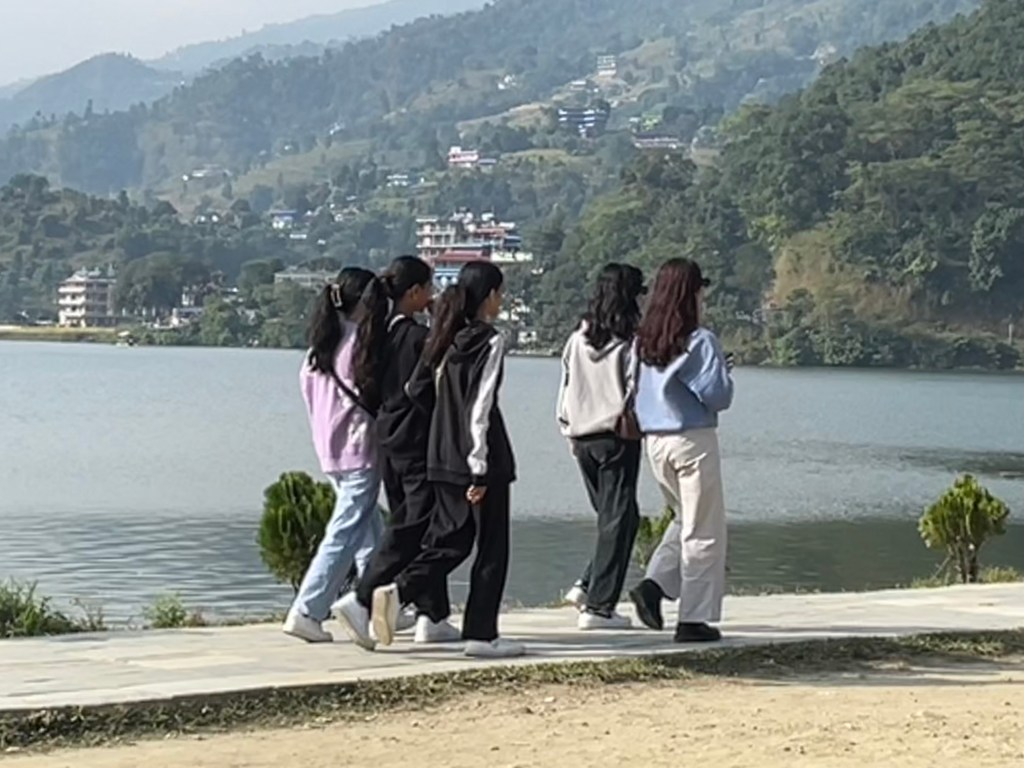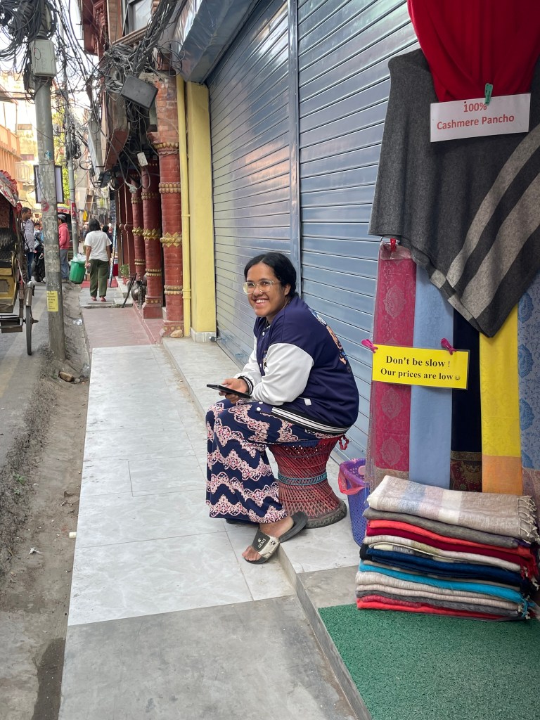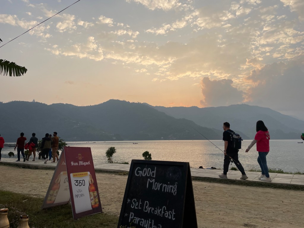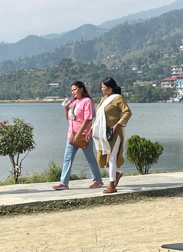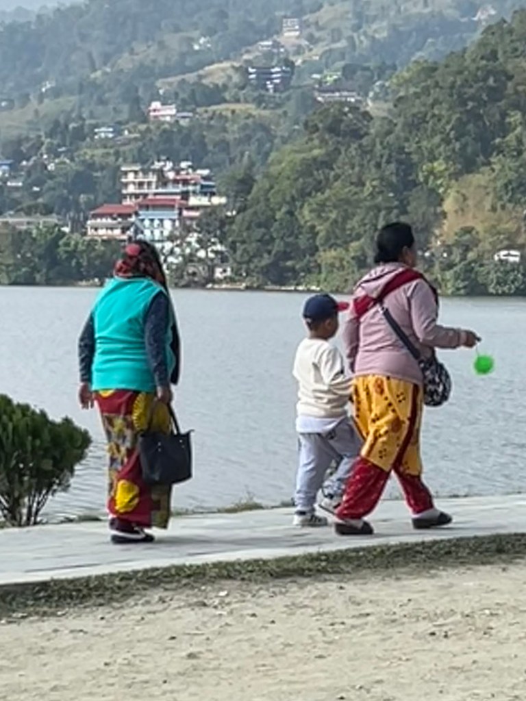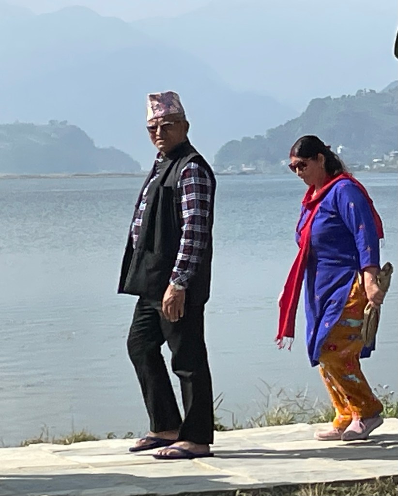 I get stopped on the street a lot – I guess I stick out in a crowd, especially since I’m 3 to 5 inches taller than everyone, usually by men. Most want to sell me something, either what they have in their hand, a ride in their rickshaw or to look in their shop near by. Looking is free they say. They are certainly helpful in the shops but not quite as adept at getting you to buy something as they are in India. Some want to show me around the city, everyone is a tour guide here, it’s a very lucrative business. Some profess they just want to talk and I do chat with them for a few minutes but it eventually turns into some kind of sales pitch. I appreciate their hustle, given the competition that’s here, it’s the only way they are going to succeed. I am a terrible negotiator when it comes to buying things, especially given that the prices are so low already but I do try, given that it’s expected. One night, I stepped in a pub for a drink and a nice gentlemen invited me to sit with him, which I did. He was a businessman from Bangladesh with several companies here, we had a lively and enjoyable conversation. The tour company operator, who I booked my UNESCO tour and Chitwan trip with encouraged me to go to Pokhara, as it was not originally on my itinerary, saying it was beautiful. He offered to personally show me around as he and his cousin were going there on holiday. They shared a lot about their lives and the scuttlebutt on Nepali politicians. We hiked, took a boat ride, and shopped – well they shopped. It was pleasant spending time with two locals on their time off.