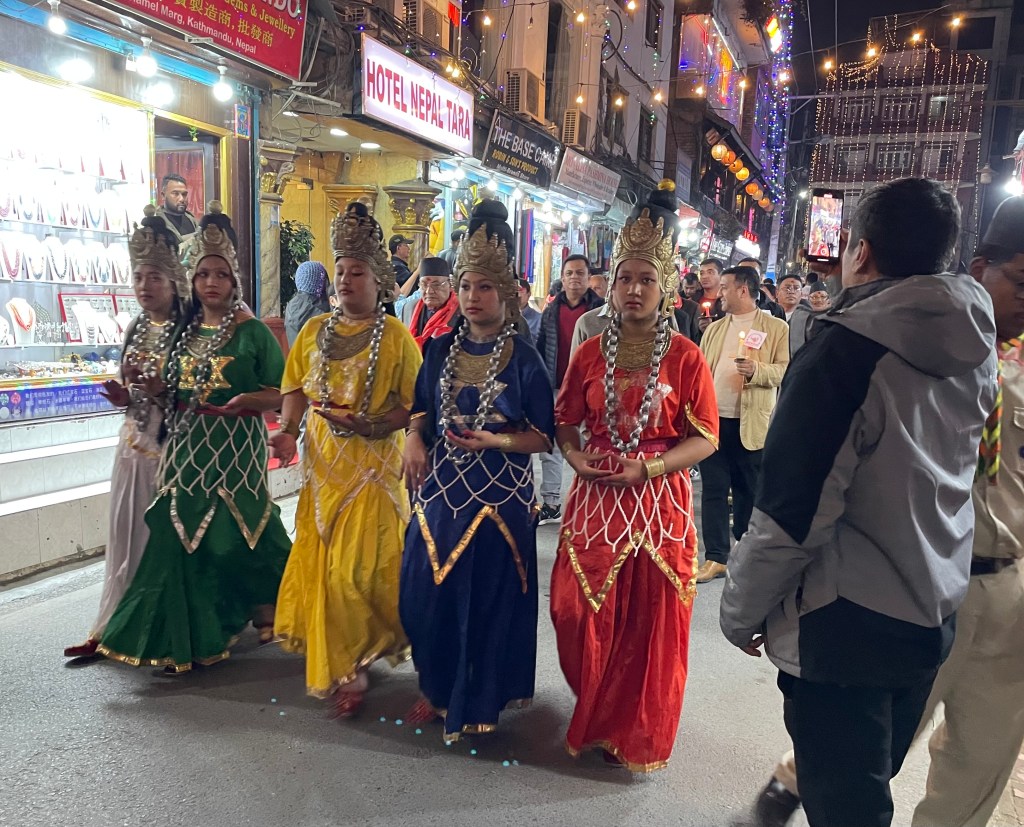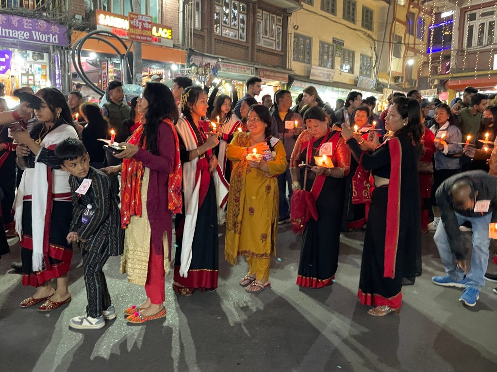 The streets of Kathmandu are narrow and windy, noisy and chaotic and filled with shops selling everything imaginable. Diwali started on the Friday before I left and the level of craziness in the city ratcheted up 50 degrees from the day I arrived. On a 30 minute walk to get lunch, I had to avoid several streets because there were just too many cars and motorcycles clogging the route and I couldn’t squeeze through. It’s an adrenaline rush when you maneuver around the onslaught of people and vehicles, each on their own mission. On Saturday, there was a big parade through Thamel, the neighborhood where I was staying. Diwali is a Festival of Lights, so there were lots of candles in the procession plus drums, cymbals and flutes. Young and old participated as they walked through the city streets. My first night in Kathmandu I did food tour, joined by a man from India. After walking through the crowded streets, with snarls of traffic at every major intersection, he said he had never seen anything like it. I laughed and asked how many cities he’s been in in India because the streets are just like this, but with a lot more horns.