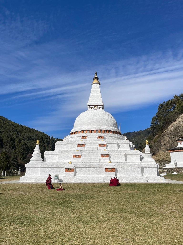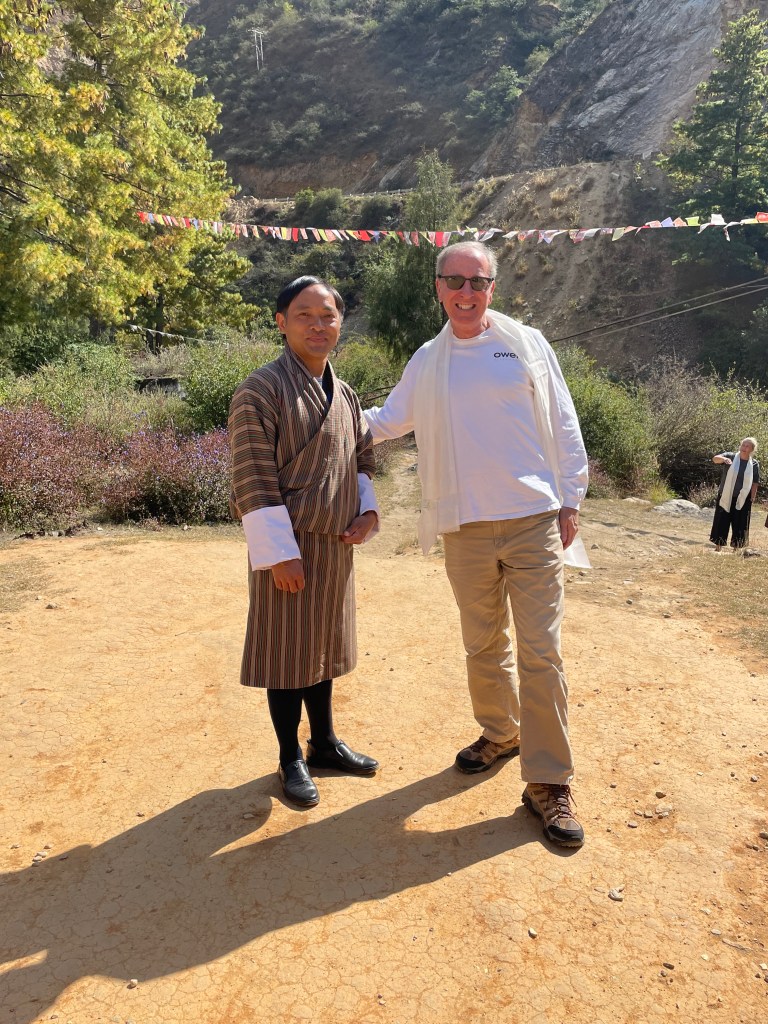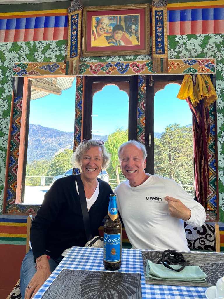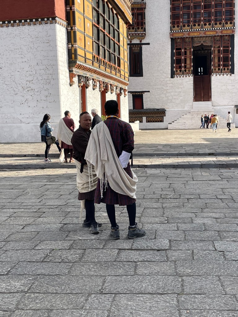 I had a wonderful 12 days in Bhutan with three awesome men. I was pleasantly surprised when a classmate, from the Owen School of Business at Vanderbilt University, decided to join me here. It was a pleasure to travel with Brad Eskind, a true Southern gentleman. He was funny, energetic – after the jet lag wore off, entertaining, a great partner in each of our adventures and I loved learning more about him. Chungdu, our guide, a very gentle soul, was full of marvelous stories at each of our stops, extremely patient and accommodating. No questions went unanswered, even what he wrote under his gho. I think I may have embarassed him more than once. I wish I could share his stories with you, but I wouldn’t do them justice, you’ll need to visit and hear them yourself. Sanjay, our driver, was a man of few words and negotiated the steep, windy, narrow roads and mountain passes – it was snowing at one 11,600 foot mountain top, throughout Bhutan with aplomb. My door was opened for me more times on this trip, then I think in my whole life. Our Kia was always spotless and he placed a new bottle of water in our car door pocket everyday.