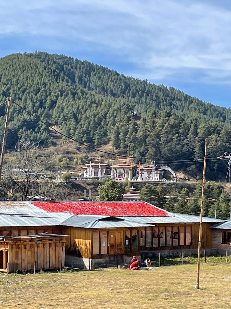 Bhutan is ruled by both a king and a chief abbott. Gyalpo Jigme Khesar Namgyel Wangchuck is the current and 5th king and is much beloved. You cannot not go anywhere without seeing a picture of him and his family – in hotels, temples, restaurants, historical sites and in personal homes. The monarchy was established in 1907 and with it the beginning of internal reforms and modern developments. In 2008, it became a democratic constitutional monarchy. The fourth king established the Gross National Happiness philosophy that guides the country. The government needs to consider 4 things as they lead – promote cultural tradition, preserve the environment, be economically sound, and demonstrate good government. To do this, the current king thinks 100 years in the future. Examples are giving farmers free electricity, seeds and support to start small businesses so that they stay on the farms. Sixty percent of their population of 700,000 people are farmers. Like many countries rural flight is a big issue with large numbers young people leaving to go to Australia or other parts of the globe. They must maintain at least 60% of their land in forest, it’s currently close to 70%. They do have a lot of natural resources but the king is unwilling to disrupt the land for short term gain, leaving nothing for future generations. Currently, the major sources of income are hydroelectric power that they sell to India and tourism. Tourist visas are $200/night, the fees goes to support the free schools and health care throughout the country.