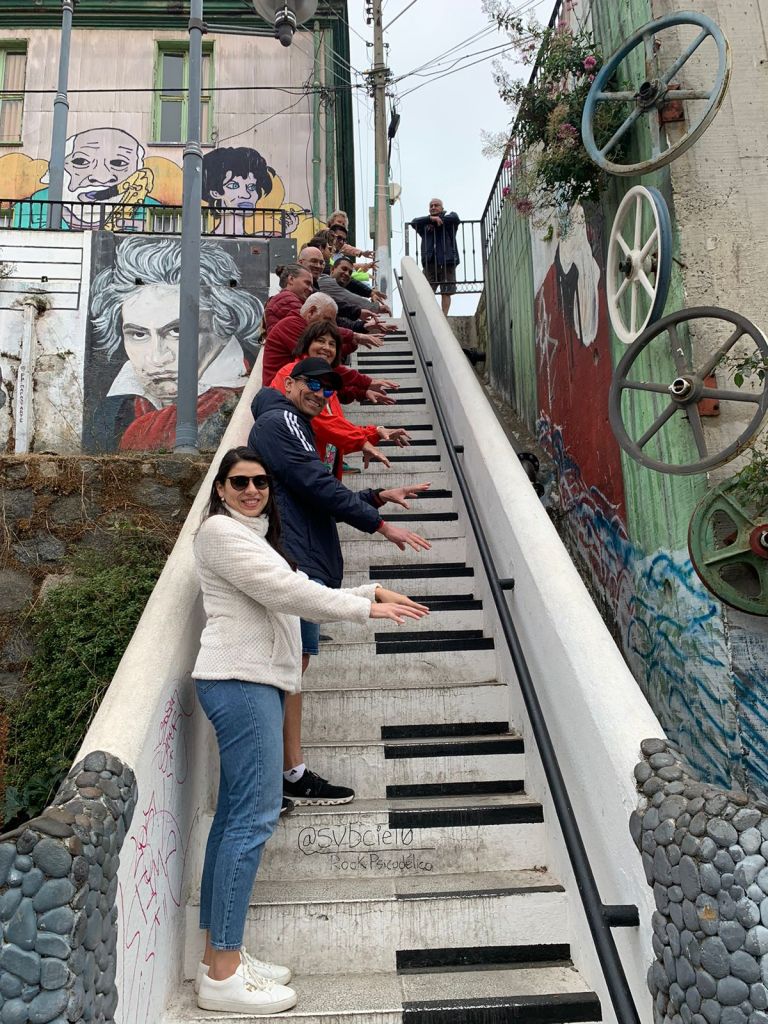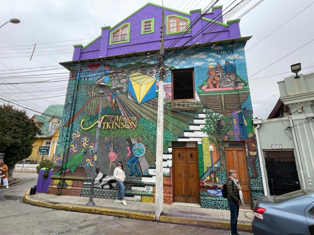 Since, I had been to Santiago before, I also scheduled day trips to the wine country of Casablanca and to Valparaiso and Renaca. I visited two boutique wineries, one a sprawling vineyard with a lovely restaurant where I had a delectable lunch and the other making very unique wines. The vintner loves to mix grapes and create new names for the wine such as Chardonnoir or Cabergnan. He also made liquors from a number of different fruits and herbs. Valparaiso, a port city on the Pacific Ocean, also had a shabby chic demeanor. The city was known for its elevators or funiculars climbing up the steep hills leading from the water. Many are no longer operational, as bringing them back to UNESCO standards is a costly endeavor for which there is no funding. We drove by one of Pablo Neruda’s homes and walked through an artsy area with lots of historical buildings, murals and restaurants before re-boarding the bus to the upscale sea side town of Renaca. The day was cool, cloudy and windy but I enjoyed a stroll down the promenade, taking in the sea air. It was also interesting to see the surrounding countryside as we traveled from city to city, filled with high rolling hills covered in scrub brush.