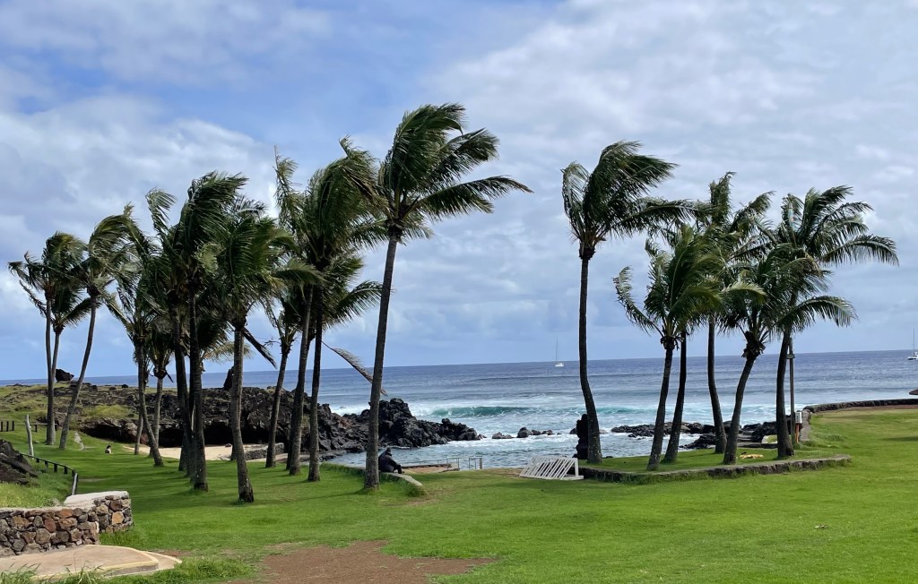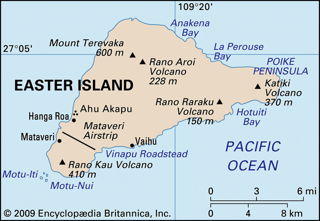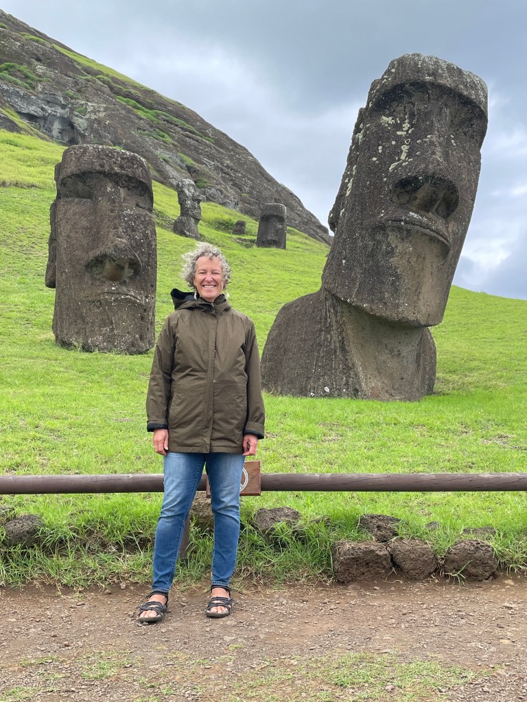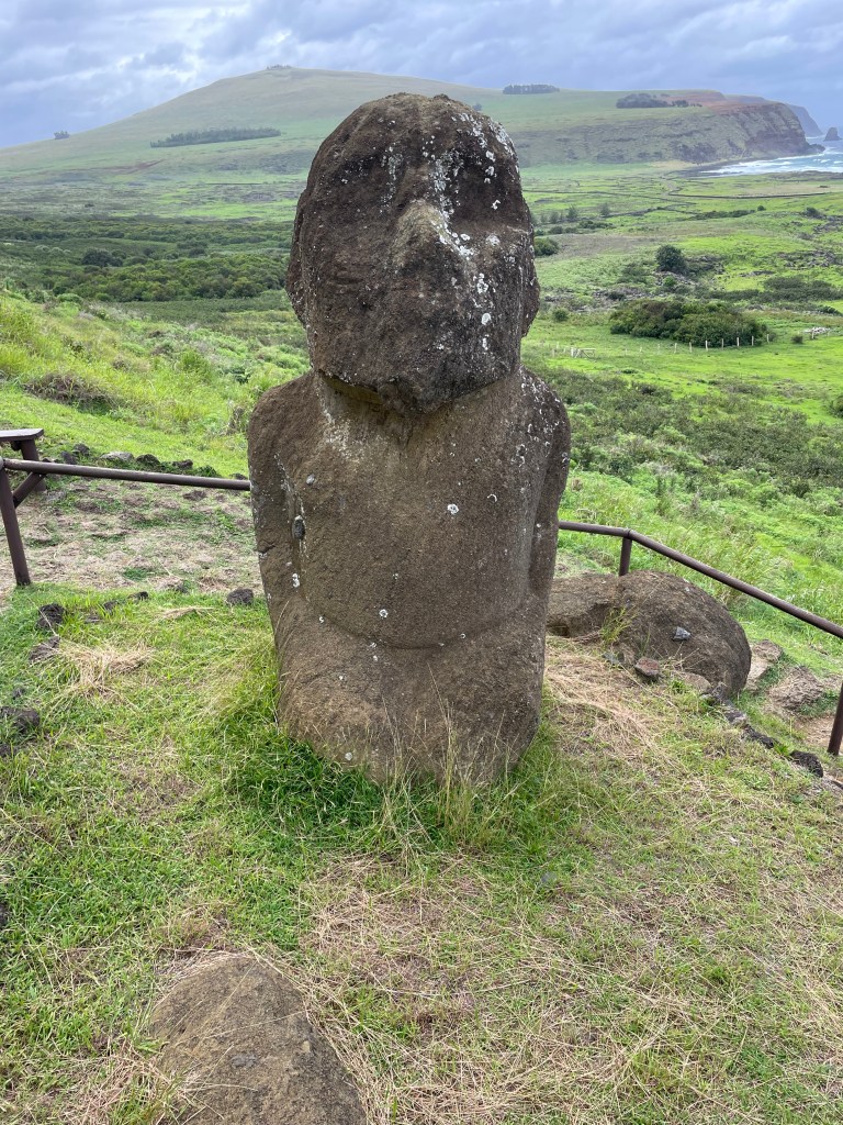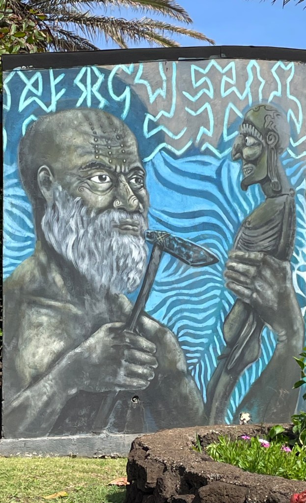 My main reason for going back to Chile was to go to Rapa Nui or Easter Island to see to moai. As I mentioned, probably in several of my posts, one of my bucket list items is to see the new seven wonders of the world. I’ve now seen six. I protest the seventh one, Christ the Redeemer in Rio, as there are large Jesus statues all around the world along with large Buddhas, etc. So why did this one make the list? I’m not disputing it is an impressive sight, just not unique. I do think the Moai on Rapa Nui should be on the list, and they are when the list is lengthen to 24 wonders. The flight to reach the island took 5 hours and 40 minutes, it’s considered to be one of the most isolated places on earth. It is part of Polynesia, a triangular shaped area in the Pacific that stretches from New Zealand to Hawaii to Rapa Nui. The island has a population of around 8,000 down from 11,000 before the pandemic. It was found by a Polynesian king sometime between 300 and 800 AD. The Dutch then discovered it in 1722 on Easter Sunday, which is how it came to be called Easter Island. Then the Spanish arrived and claimed it for Span in 1770. In 1888, Chile annexed the territory for sheep raising. Now it seems to be a little bit of this and a little bit of that and something in between. It has an island vibe and uses the Chilean peso, Spanish and Rapa Nui are spoken.