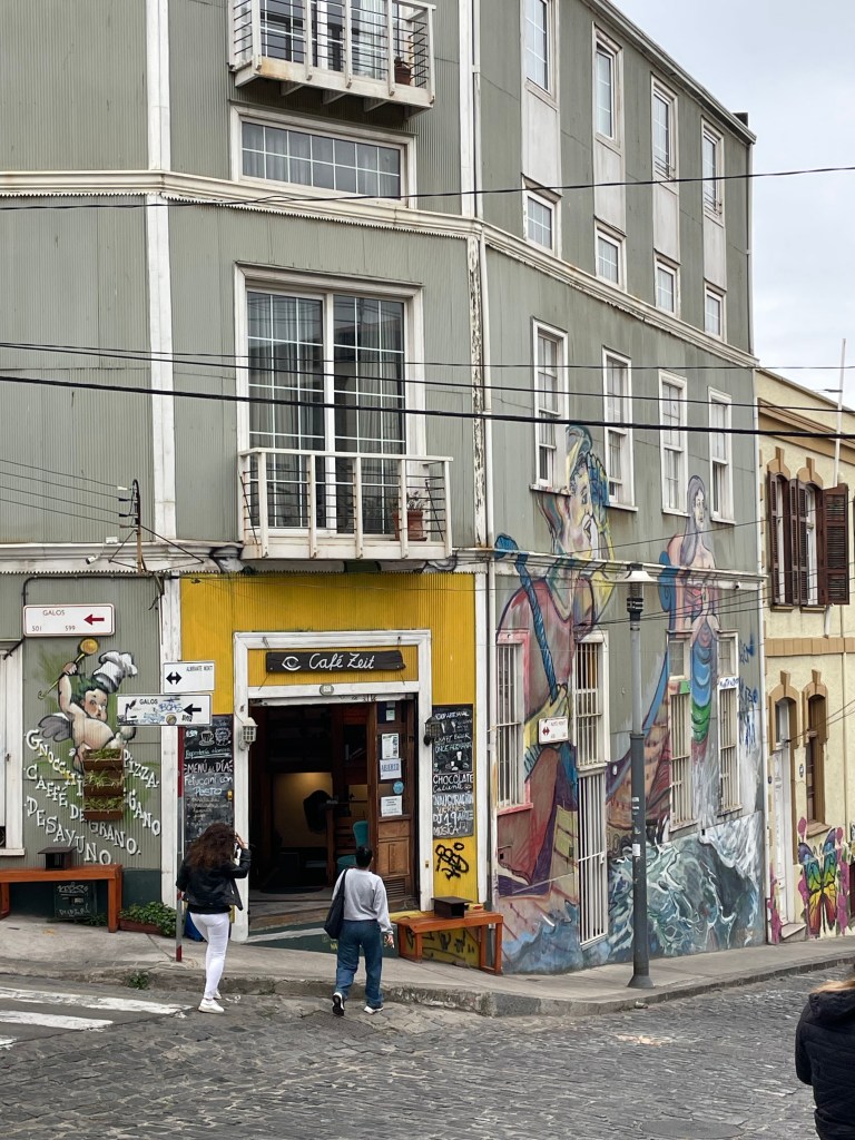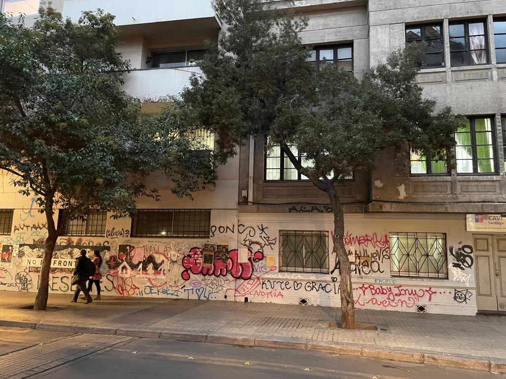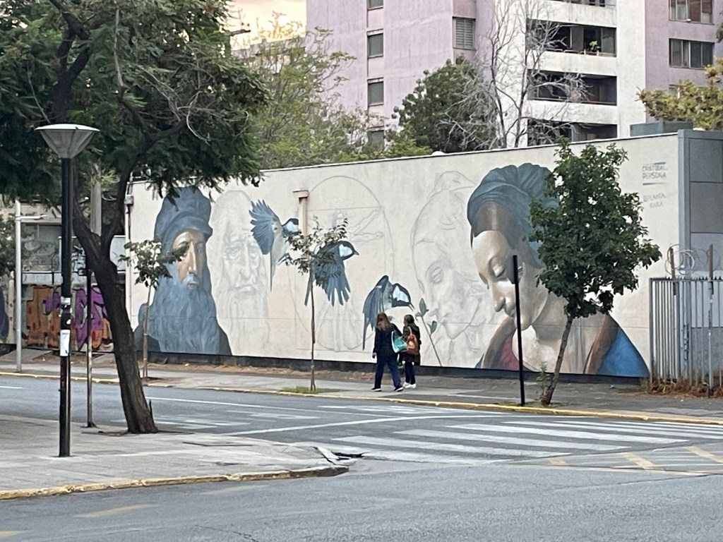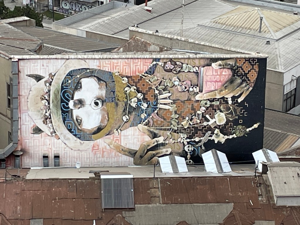 Chile is the second country on my trip that is a repeat visit. I toured Patagonia in 2020 with a group of friends, ending that stay with a couple days in Santiago. So as I walked through that city again, both on my own and on a half day tour with a guide, many places looked and felt familiar. It’s hard to describe Santiago, the best I can come up with is shabby chic. It has quaint neighborhoods, active parks, fabulous street art, and a bustling restaurant scene. It also has graffiti everywhere. And most of the shops and restaurants throughout the city center have shuttered their windows and draw down steel doors when they’re not open. These ‘safety’ measures are left over from the riots in 2019. I was warned about pickpockets and to be alert but generally felt safe wherever I went and I wandered one day for over an hour, even on the wrong side of the river. I saw quite a few homeless people encamped along the river not far from my hotel so I asked about the poverty level. He said that a lot of people say there are two classes in Chile, middle class and wealthy but obviously there is some poverty.