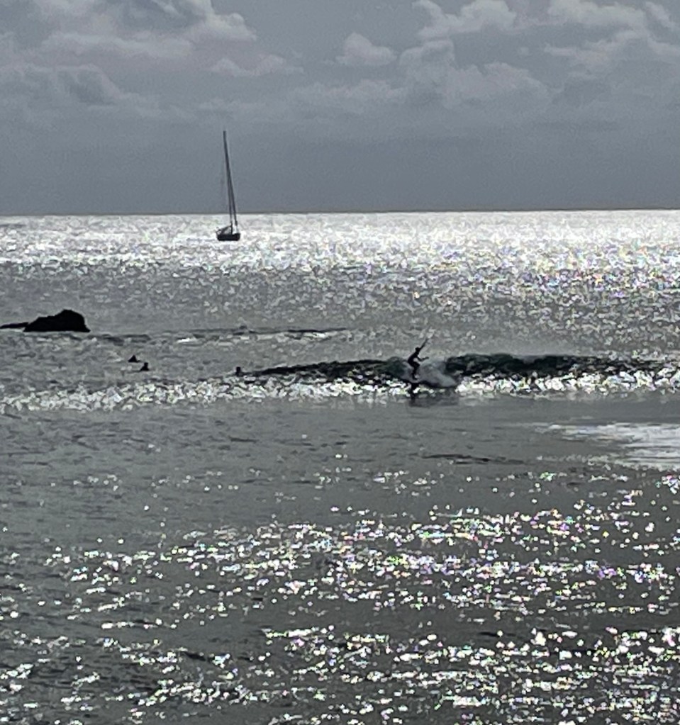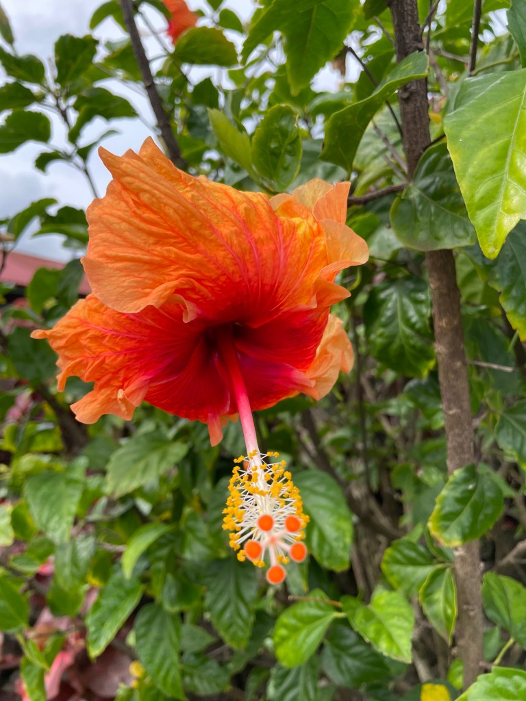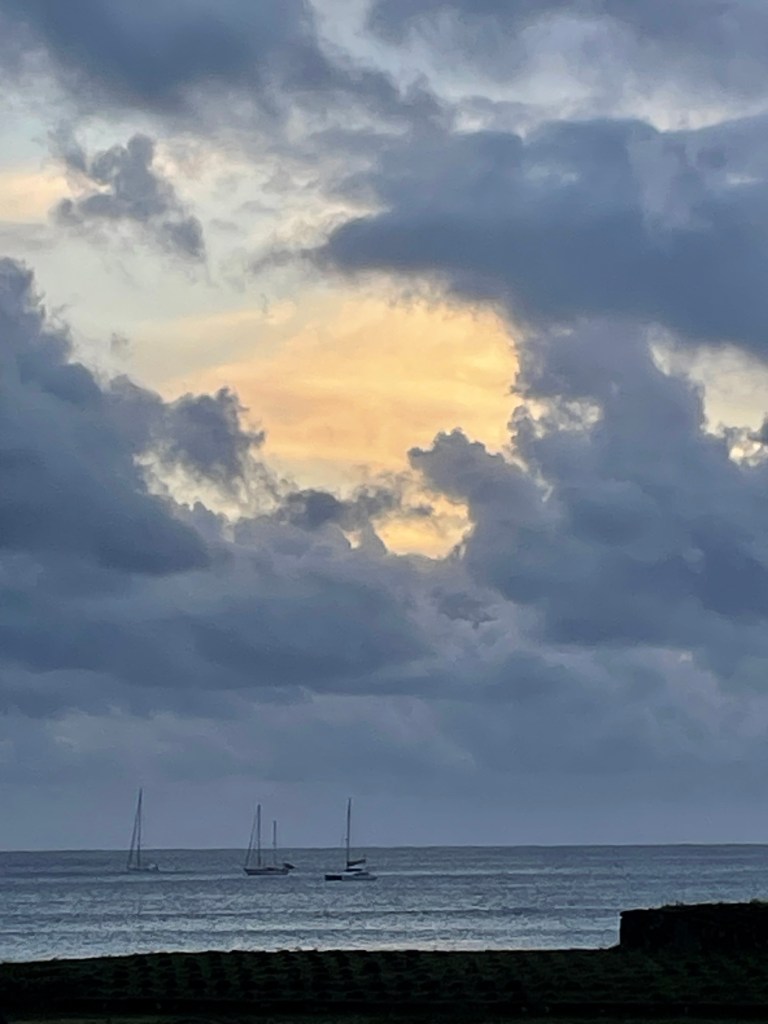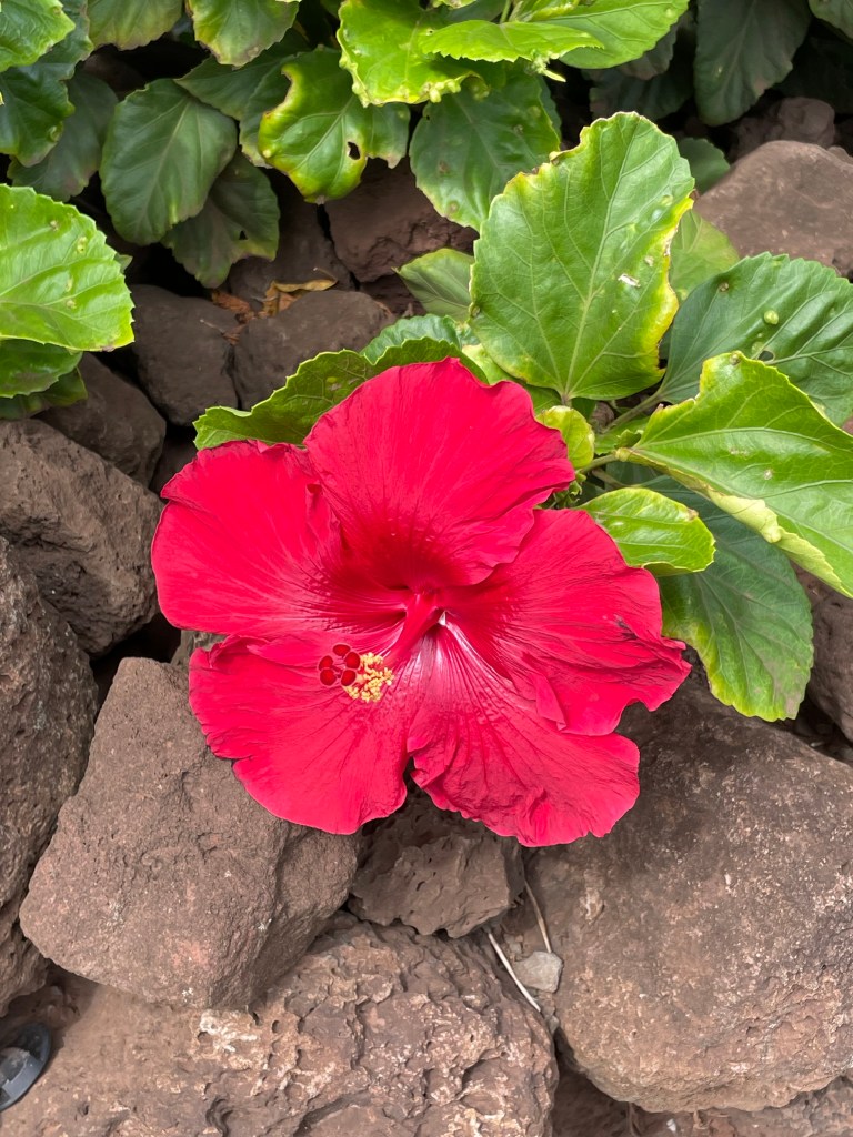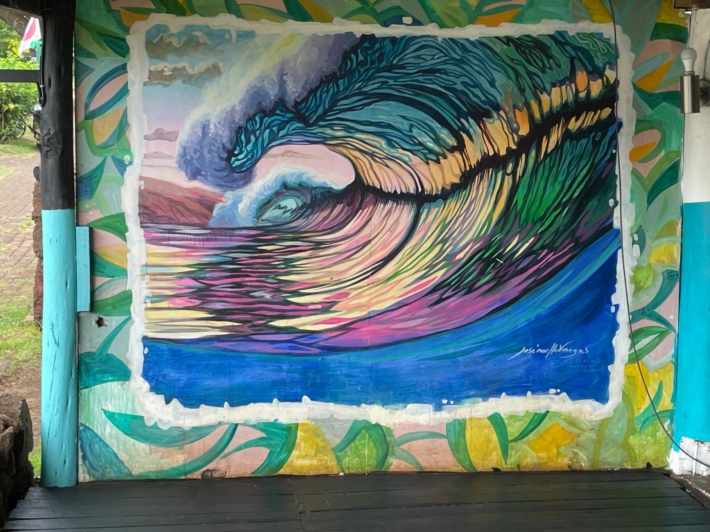 Walking to the cave we went through a wild guava field. The bushes had some ripe fruit which we ate while we walked. Yum. The island was adorned with blooming hibiscus, one of my favorite flowers, and other colorful blooms. Dog and horses run freely over its 63 square miles. The only town, Hanga Roa, is small but was filled with cute boutiques, souvenir shops, grocery stores and marts, as well as many restaurants. I stayed at a boutique hotel – as far as I could tell I had the only room, but there were also cottages behind the building. Each day breakfast was served in a dining room that spilled out onto the patio overlooking the ocean. Paula, the manager, always had a wonderful spread of fresh local fruit and juices, a selection of meat, cheeses and breads, yogurt and cereal and eggs to order. Papas frites were readily available in most of restaurants often topped with cheese sauce and bbq meat. Empandas were everywhere and I managed to find several vegetarian versions. Ceviche was wonderful and fresh. Tuna is a specialty, in the past there were times that royals were only allowed to eat it. Now however, you find it in tacos, empanadas, ceviche, sushi, and grilled. I had shrimp fajitas one night and a poke bowl another. I also enjoyed the picante sauce that they serve with bread instead of butter. Muy bueno.