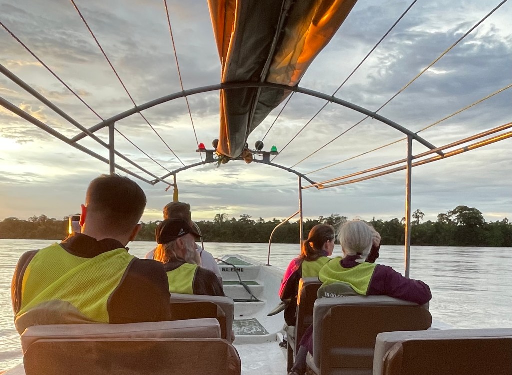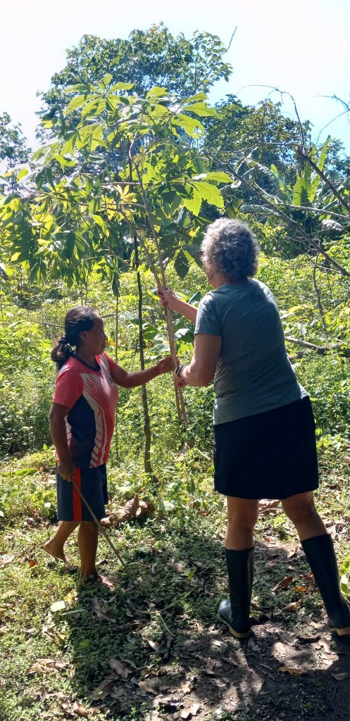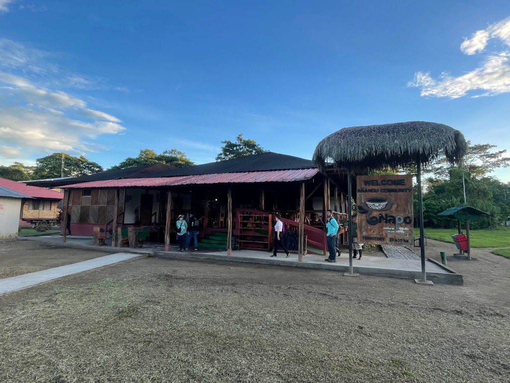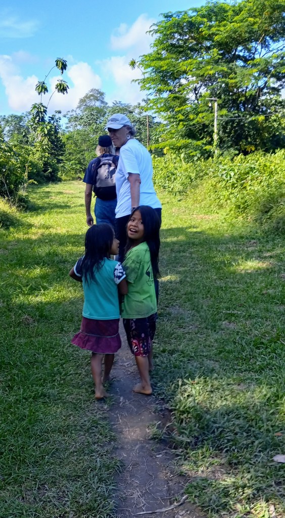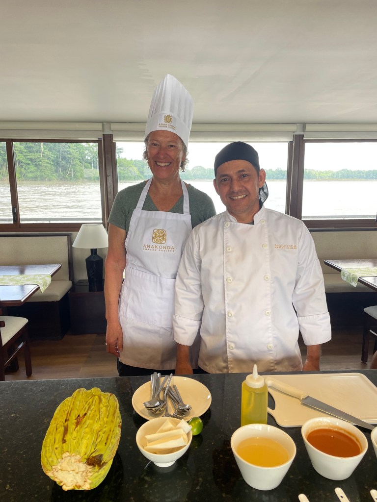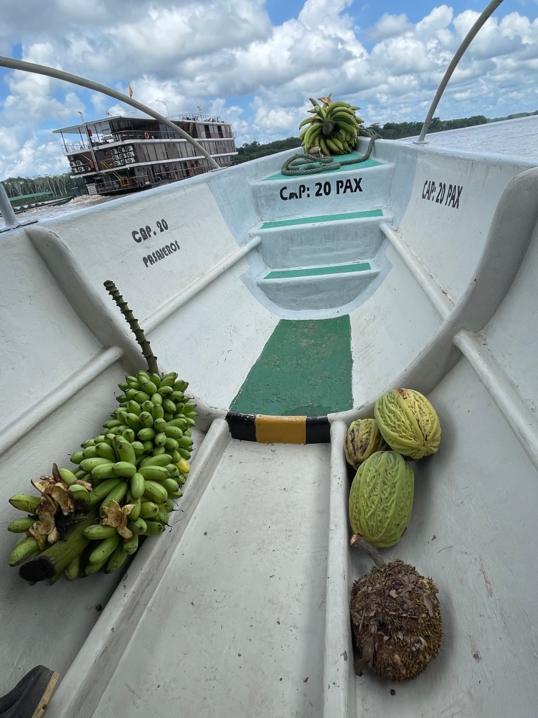 Each village was different. One tribe lived with their houses encircling a village green. The men left most days to hunt, work on the river or in a nearby town, leaving the woman and children behind with one tribal elder. The women, working at the ‘community center’, fashioned small items out of clay, to be sold to tourists to earn additional cash. One tribe granted large acres to individual families so they lived spread apart. They subsisted on the plants they grew from their permaculture gardens. We ‘shopped’ there for some items for the boat – yucca, plantains, bananas, hearts of palm, breadfruit and cocao. When we got back later in the day, we had a cooking class using some of the foodstuffs. The third village was one of the first models of eco-tourism in the area. It was created to reduce the tribes reliance on the oil companies that were ravishing the rainforest. They had a beautiful lodge, which attracted backpackers, as well as an observation tower which allowed us to see the jungle from above the tree line. In 2023, the citizens of Ecuador voted to stop all oil production in the Yasuni National Park, which is where these tribes live. Fifteen percent of the nations oil reserve will now be left untapped. The oil company needs to clean up the area and reforest it within a year.