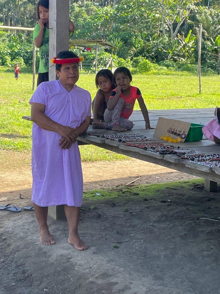 The rainforest was thick and dense, easy to see why 90% of the first explorers perished before reaching their destination. We were there near the end of the rainy season so everything was very green with lots of bright colored blooms sprinkling the landscape. We visited one small town Nuevo Rocafuerte, and several villages of the indigenous tribes – the Secoya and the Kichwa. All of these places are only accessible by water. It was fun to see the children headed to class in a school boat. There are 10 tribes that live in the area. Two, the Tagaeri and Taromenani are almost never seen by the outside world, living deep in the jungle. One, only has 100 members and will soon be extinct as they do not intermarry and none of the woman are of childbearing age. The Kichwa are the largest tribe, making up almost 80% of the population, most have integrated and intermixed, though there are still some who are 100% Kichwa. The tribes are democratic societies and decision are made by consensus.