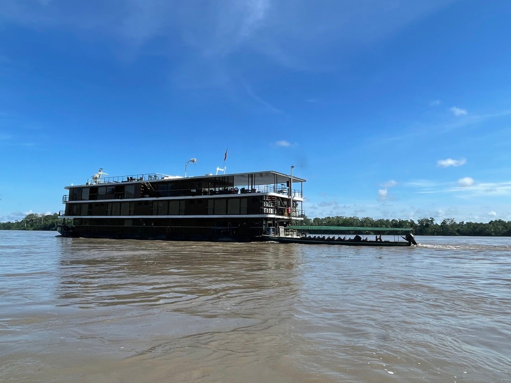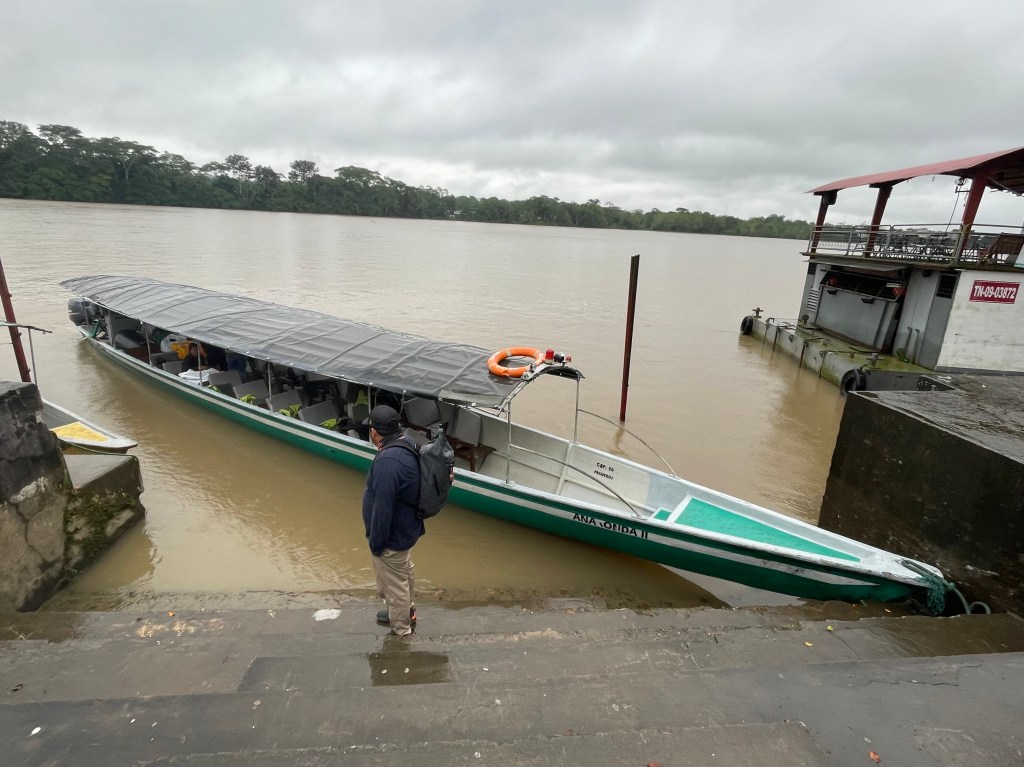 I started out my Ecuador adventure on the Napo River, cruising through the Amazon rainforest. The river appeared to be twice as wide as the Cumberland in Nashville. We navigated by zig zagging the waterway to stay in the deep channels. There was quite a bit of traffic on the river, including barges carrying oil tank trucks. Flying from Quito with an elevation of 9,350 ft to Coca, elevation 984 ft was very uncomfortable, the pressure on my ears lasted almost the whole flight – luckily it was only a 40 minute ride, and took over 30 minutes to clear once we landed. I was collected at the airport and whisked to a 20 passenger canoe that motored us to the vessel I would call home for next 5 days, the Anaconda. I was one of six passengers on the boat that slept 36, so it felt like a private tour. There were 14 staff that catered to our every need – serving delicious meals, creating delightful cocktails, handing out refreshing face cloths and keeping our rooms spotless. We were kept very busy and everyday was filled with a new adventure.