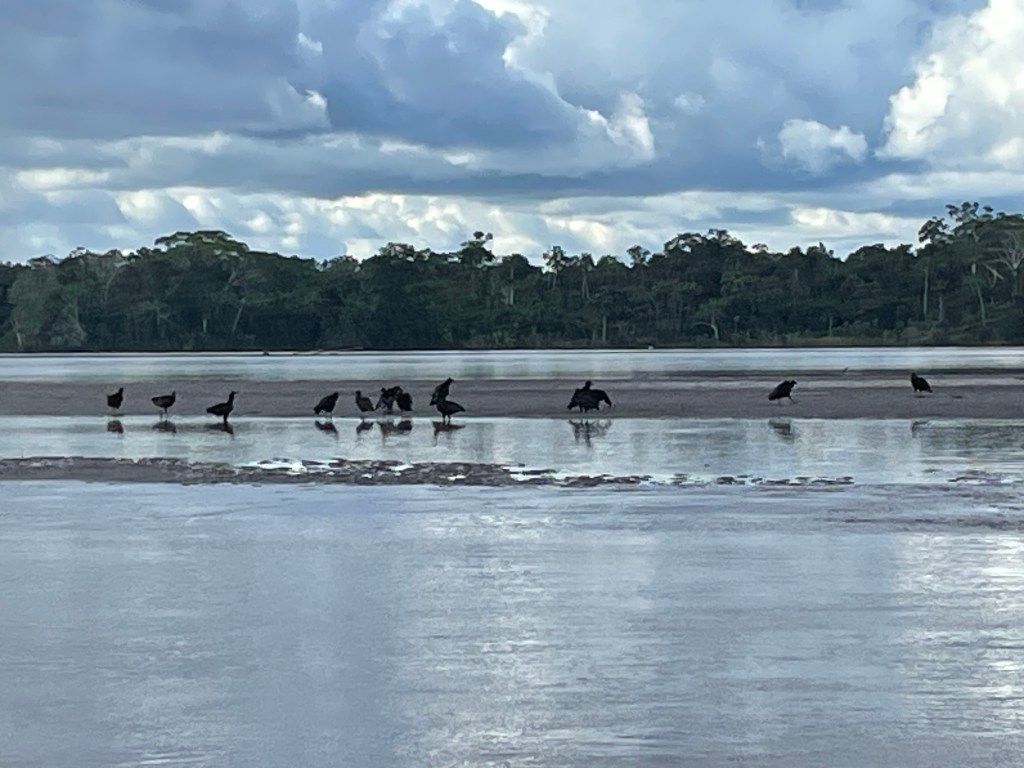 We observed dozens of birds including swallows, plovers, herons, stinky turkeys, red headed cardinals, and woodpeckers. On one excursion we went to a clay lick and sat quietly, soon two Scarlett macaws alit on some high branches above us. They were then joined by a few more, then another pair until almost a dozen were perched over head. Then scores of colbalt parakeets started streaming down through the leaves to the clay, soon there were hundreds of them, tweeting and chirping as they jumped from place to place. It was magical. All of a sudden the macaws squawked a warning, and all of the birds took flight, flying directly at us and then overhead. We never saw what startled them but was told it was probably a monkey. I did spot a toucan but only from a distance. Sorry my bird pictures suck, those are parakeets on the rocks next to the cave.