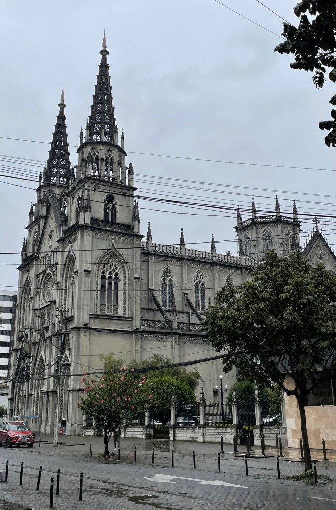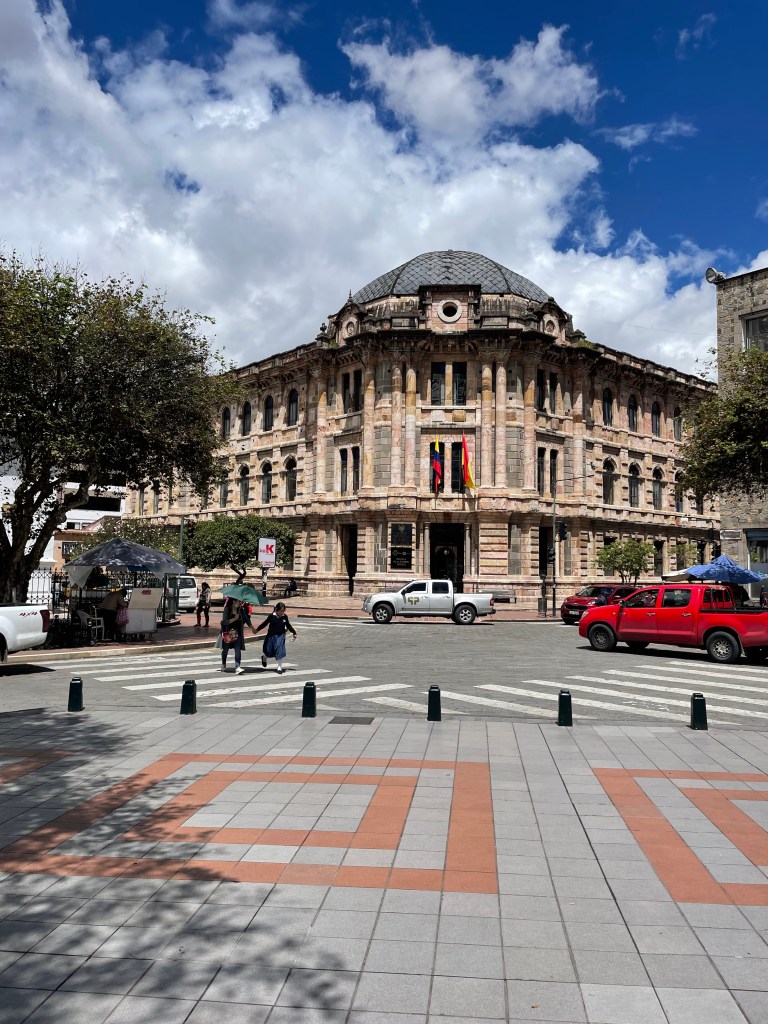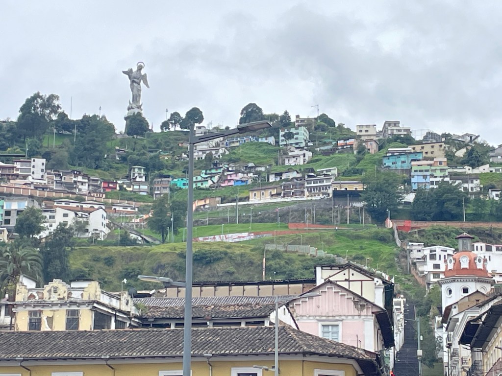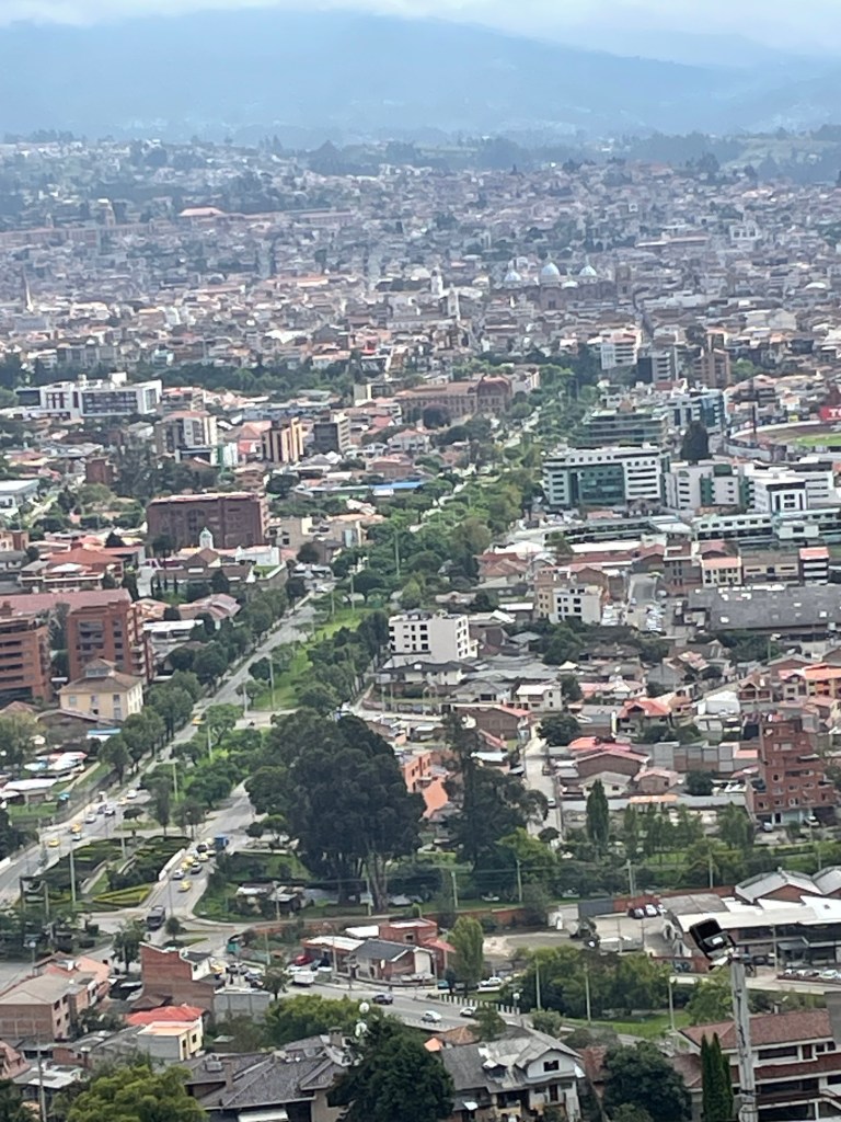 The largest city, population 3.2 million, and the commercial center of Ecuador is Quayaquil. It’s on the coast and is the only region I didn’t have a chance to visit. I did however spend several days in Quito, the capital, a city of almost two million people and Cuenca, the cultural center, population of 600,000, both located in the Andes region. I was invited to Cuenca by a friend I worked with during my years as a consultant, she retired there 5.5 years ago. It was a lovely visit and a wonderful city. Of all the places I have visited, I could see living there. It has a temperate climate, an active ex-pat community, a quaint historical town center called El Centro, nice restaurants, good health care, and is very affordable. My friend has a beautiful condo, about 1600-1800 sq ft, with a large terrace that surrounds three sides. She has a dining table outside, lots of sitting areas, plants every where that attract hummingbirds and bees, and even a grassy area for her dog. In Nashville, the terrace alone would cost me what she paid for the whole condo. I definitely had terrace envy. She lives across the street from a wonderful park that lines a river for miles, and less than a block from a tram that takes her to El Centro and shopping for $.17/ride. Taxis cost around $3 to most anywhere in the city so she did not own a car. There is no heating or air conditioning in the condo so utility costs are very low. She is learning Spanish and can converse fairly easily with almost anyone who has just a little patience. She is very engaged with the local community, even adopting a sweet street dog named Spirit.