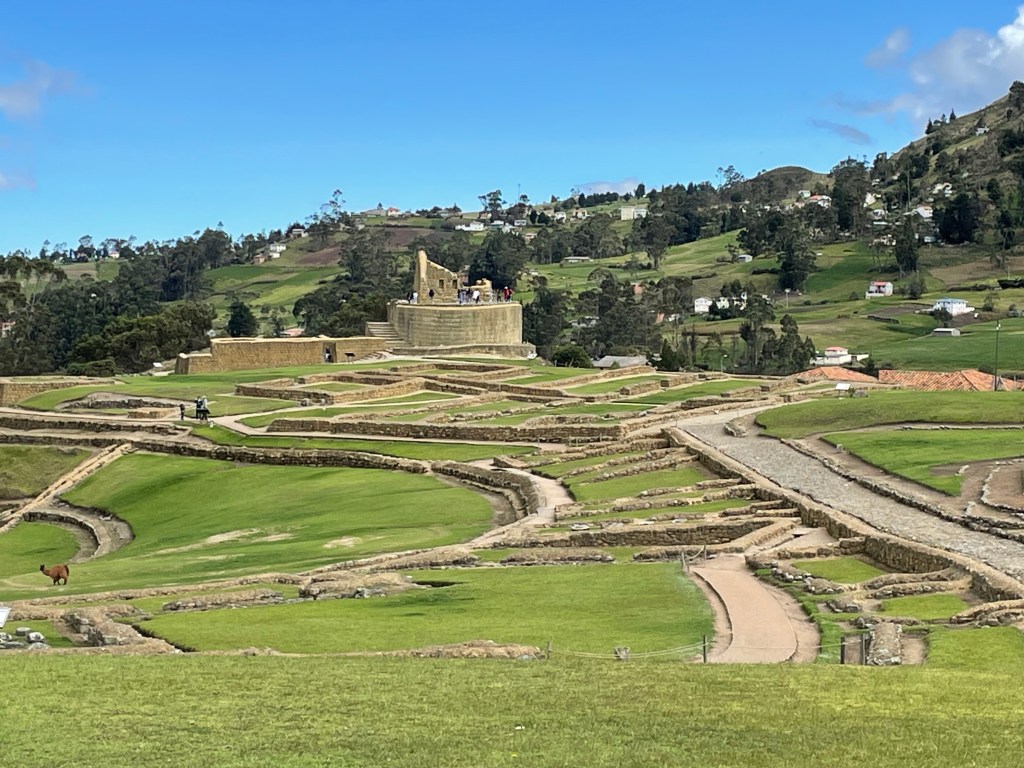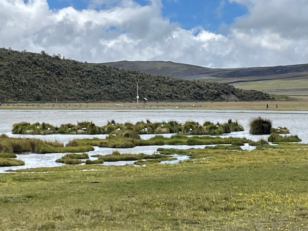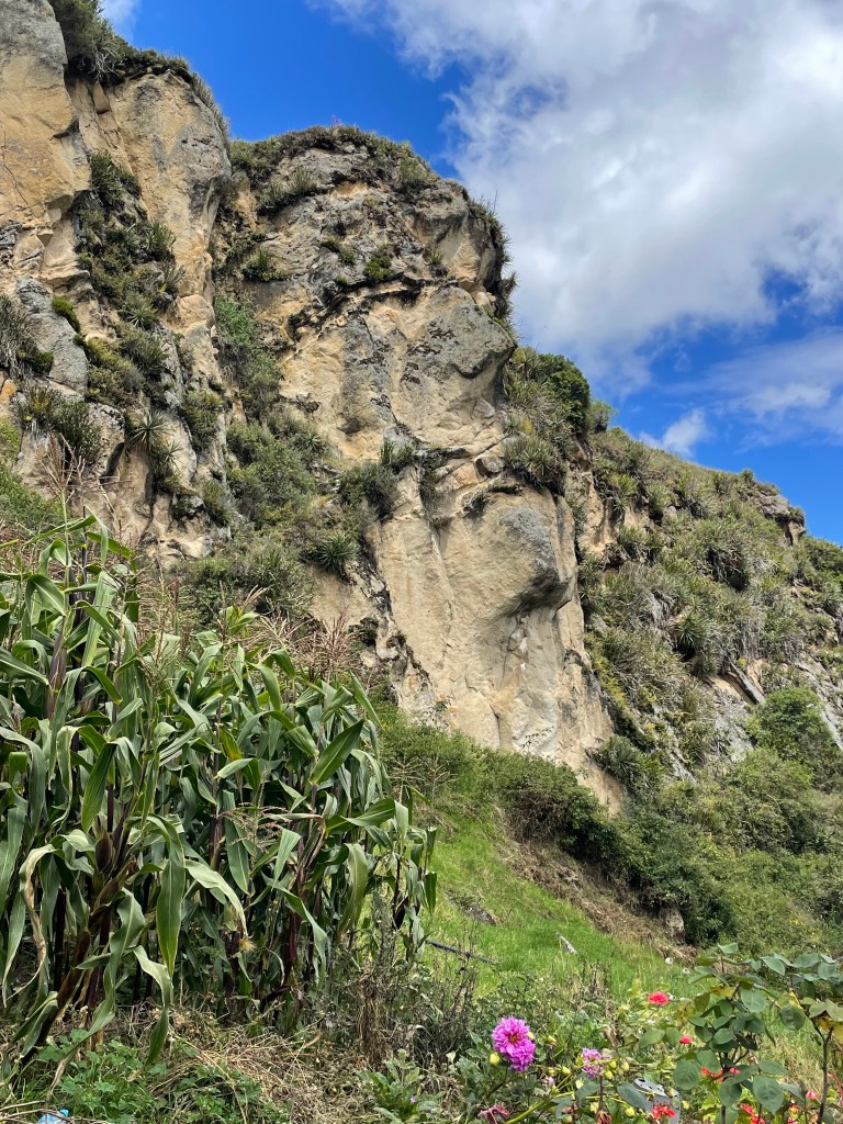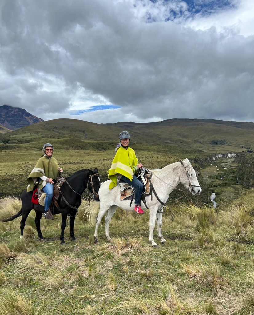 While in Cuenca, I enjoyed a tour of El Centro ending with a cleansing by a local woman at the central market. There were 10-12 woman offering their services, often with people lined up waiting for an empty chair. I also visited the historical ruins of Ingapirca, located on the Inca trail. Originally, a Canari city, it was later taken over by the Incas after they invaded/settled the area. At 10,000 feet elevation, the 45 minute hike around the area caused me to be a little short of breath. But it was a beautiful day and I loved it. I also hiked at Cotopaxi National Park, about an hour outside of Quito, which was at 14,000 feet and appreciated that the trail was almost flat. My friend Pam, who I met when she lived in Nashville though she recently moved to Colorado, joined me in Quito and on the hike, before our tour in the Galapagos Islands. The trail at Cotopaxi, went around a clear pond where white birds nested along its grassy banks and dozens of varieties of wild flowers in pink, white, orange, periwinkle and yellow bloomed. After our walk, we rode horses across the vast, unique landscape of the Andes, surrounded by three volcanos, the Cotopaxi covered in snow. On our two hour excursion we didn’t see another soul, except a falcon soaring overhead, and the only sound was the wind rustling the grass and the jingling of the bridle when we trotted. It was stunning. Driving through the park we saw herds of wild horses and cattle.
