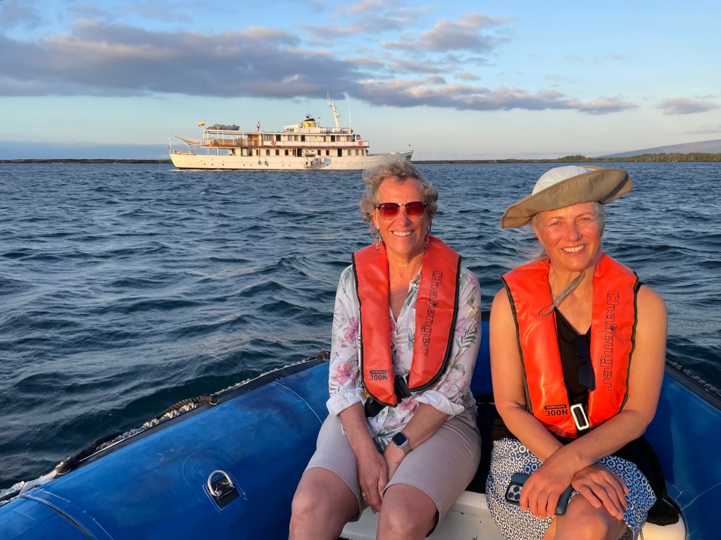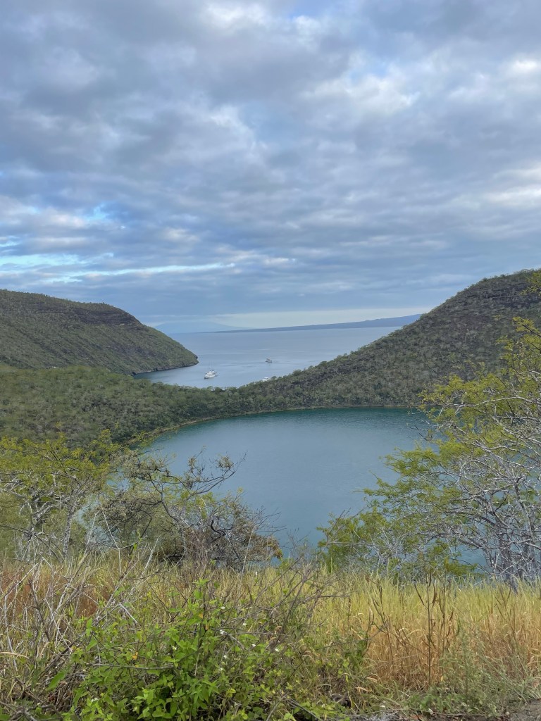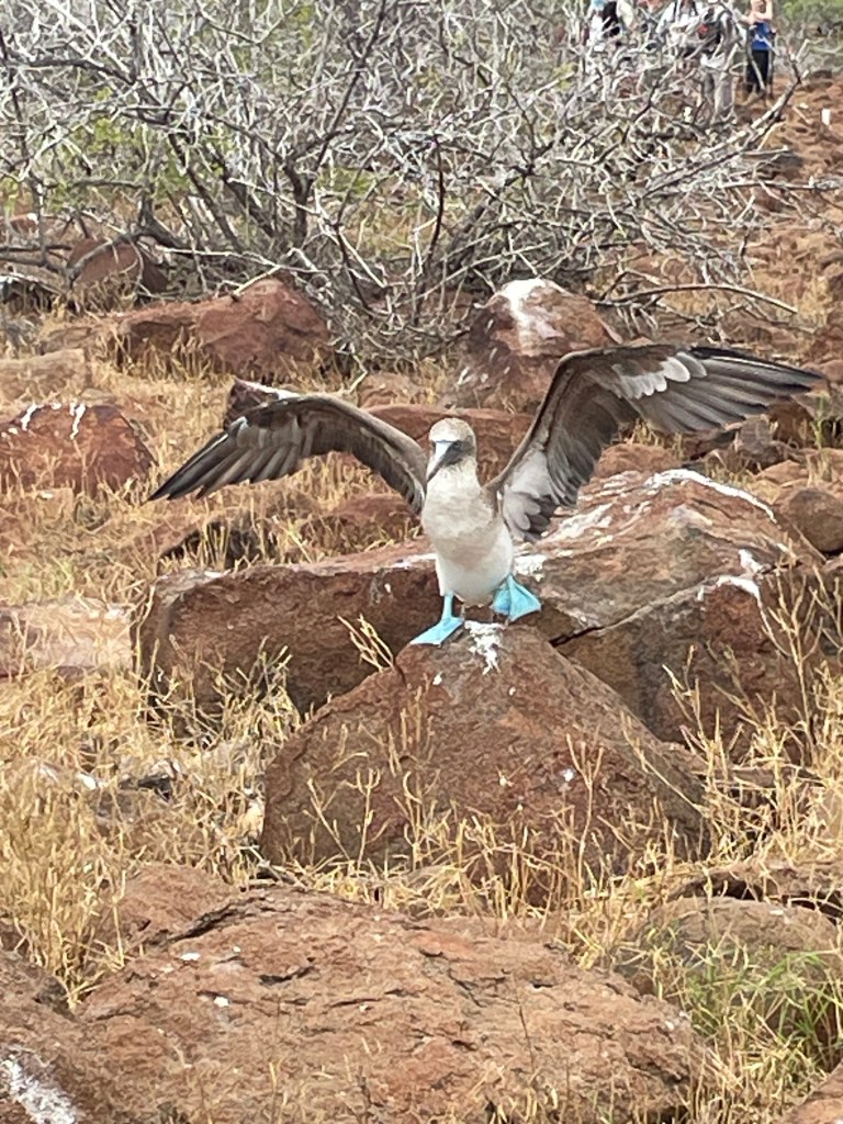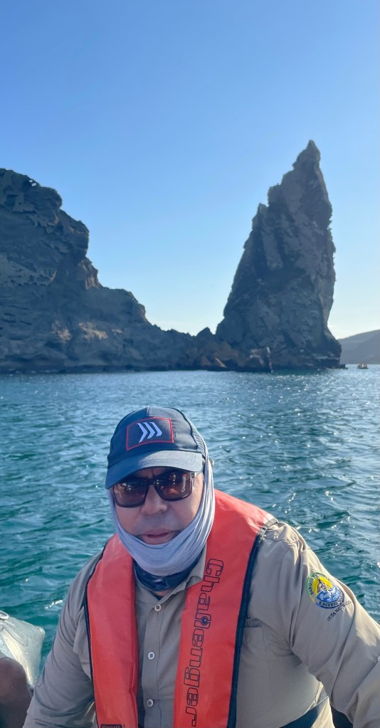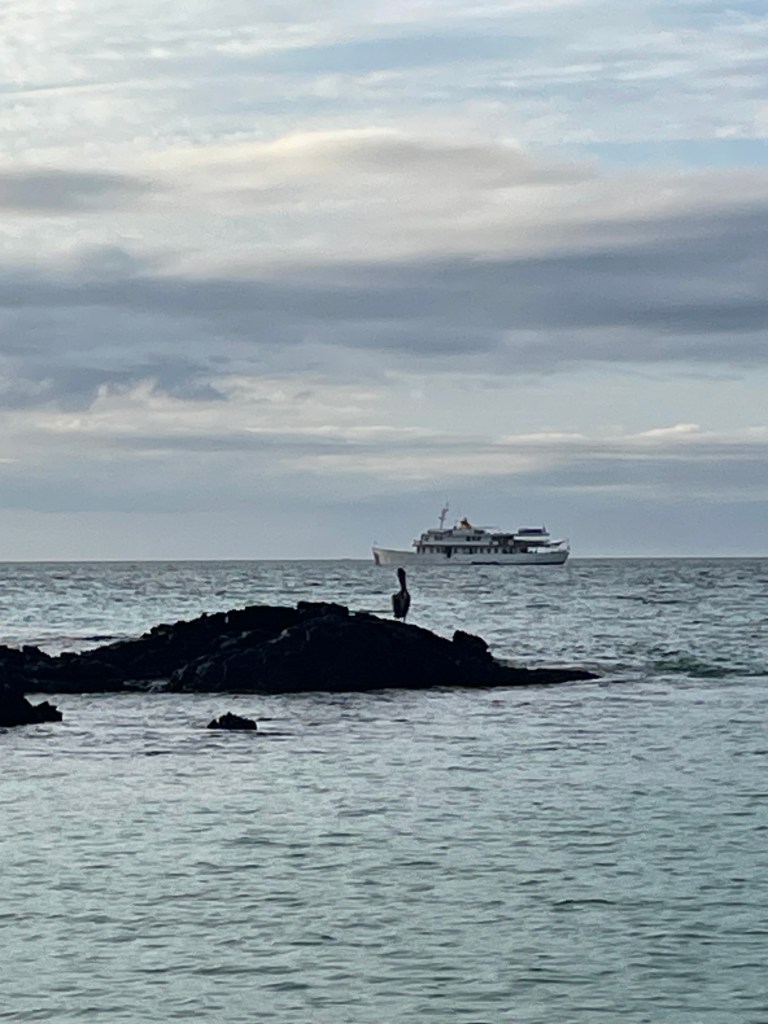 Time to get back on the water. Pam and I arrived in the Galapagos on a beautiful sunny day and boarded the Grace – once the yacht of Princess Grace of Monaco. Many thanks to my friend Brad Eskind – who you might remember joined me in Bhutan, for recommending it. She slept 16 guests. All of us were from the US, spanning the nation from San Diego to Boston. One woman came with her son who was 21 but the others ranged in age from their fifties to their seventies. I enjoyed meeting and hanging out with all of them. From day one, they told us this was not a vacation but an adventure and provided us with one wonderful activity after the other – snorkeling, hiking, kayaking, nature talks and panga rides. As the boat cruised from island to island we navigated daily in a panga or zodiac to our activities. There were two naturalists on board, Diego and Walter, who accompanied us everywhere we went, providing in-depth commentary. Gibson, the on-board chef prepared three delicious meals each day, with multiple options for the main course. Highlighting, of course, the fresh seafood of the islands. Xavier, not only mixed fabulous cocktails but served us our meal as well. Ten more staff worked to make the trip safe and special, from Jorge, our captain, to Alex who cleaned our rooms and left creative towel animals on our beds.