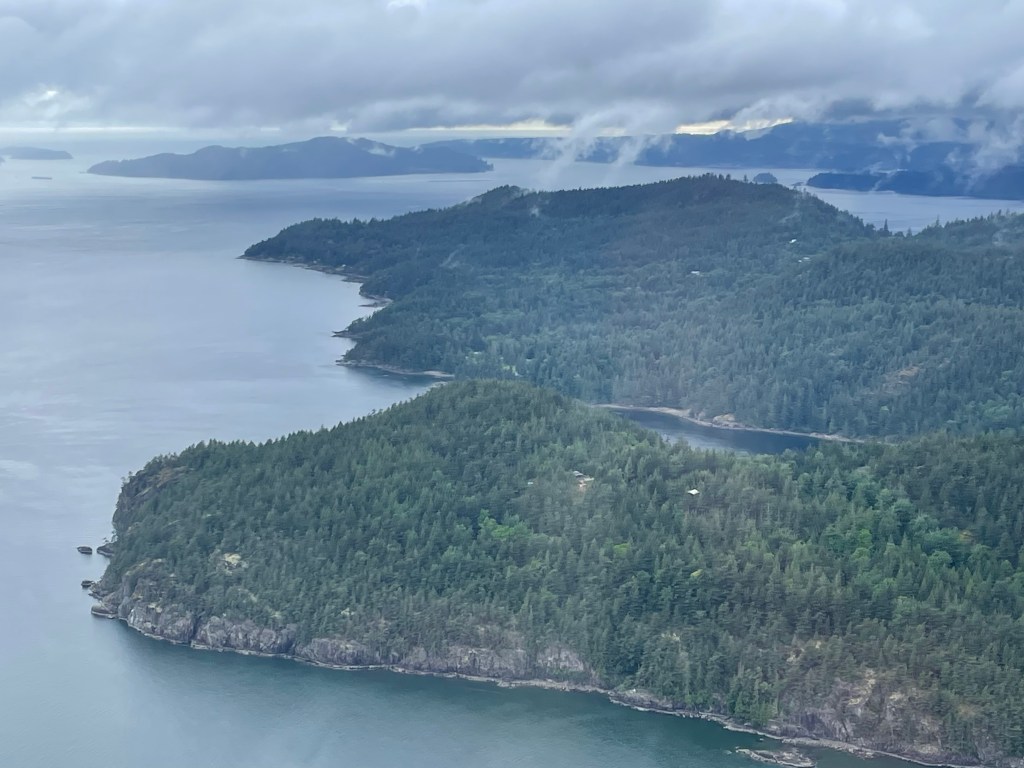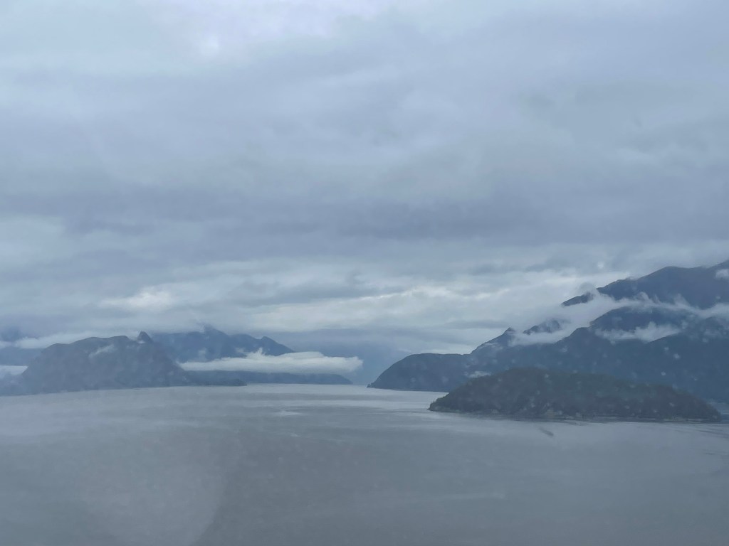 From the start, Esther Lee and I got together, parted, and rejoined each other. My first afternoon was spent taking a sea plane on a tour of the Vancouver islands, while Esther Lee stayed at the hotel. My pilot, Joelle, was a young Frenchmen who invited me to sit in the cockpit with him. He was quick to tell me not to put my feet on any of the pedals or grab the steering apparatus. I didn’t really need to be told, but heck, safety first, as there is always someone that needs to see what would happen if they stepped where they shouldn’t. We were connected by headsets so chatted merrily away about what we were flying over and our other travels. We flew along the Strait of Georgia, viewing steep green islands and peninsulas with tiny houses and cottages along the shores. Other than the ride from the airport and walking to and from the beautiful Fairmont Vancouver Hotel to the harbor, this was my only chance to see a little of the city. The other passenger was left to his own devices, which was a little sad. It was a gray rainy day and I had hoped the weather would break but instead it got worse. Our landing needed to be done by instruments alone as you could not see the ground in front of us. However, it wasn’t a scary flight as Joelle was very calm and seemed to know what he was doing.