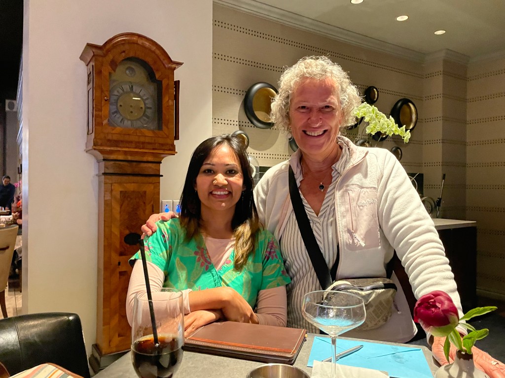 I did learn that Vancouver is the second most expensive place to live in the world. The cheapest house you can buy in the city, and that would be a very modest one, costs at least $2 million. That would be a rare find. A basic three bedroom, 2 bath house would sell closer to $8 or 10 million, and $40-50 million houses are not uncommon. You would need to live about two hours outside of Vancouver to find an ‘affordable’ house. That is possible because of Vancouver’s public transportation which is both efficient and convenient. Its system includes buses, the ferry and light rail, all of which are ecologically friendly, reliable and inexpensive. While there, I connected with a young woman, Sausan, who had interned with me at Vanderbilt University Medical Center a number of years ago. She made use of the SkyRail to come into the city so we could get together.