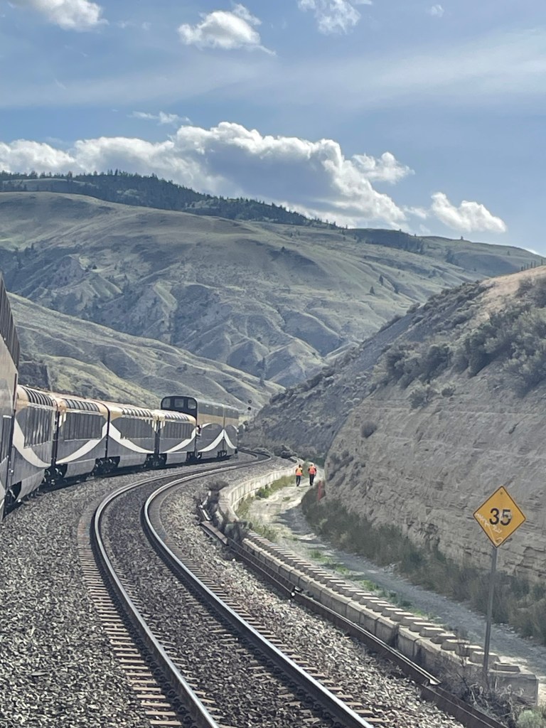 There was a rotating cast of characters as I traveled across Canada, so a very different experience than traveling with a tour- seeing the same people each day or on my own-crossing paths with strangers now and then. Even different than traveling with friends who joined me along the way, as we usually did most everything together. My trip started in Vancouver, where I met up with Esther Lee, a good friend from Culleoka, TN. She arrived a day earlier and spent the day exploring the hotel and studying the maps of our train journeys to come. In the morning, we would be boarding the Rocky Mountaineer for a two day trip, stopping in Kamloops the first night before continuing on to Banff. We would then travel by bus to Lake Louise, Jasper and Edmonton, where we would board the Via Rail to take us on a four day trip to Toronto.