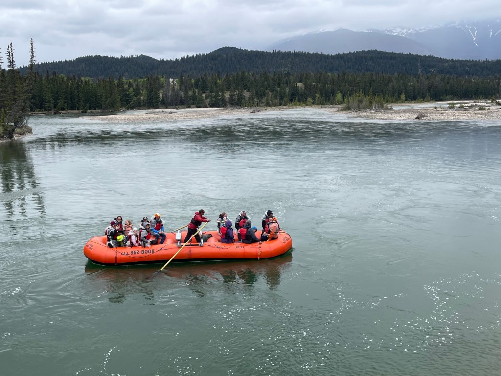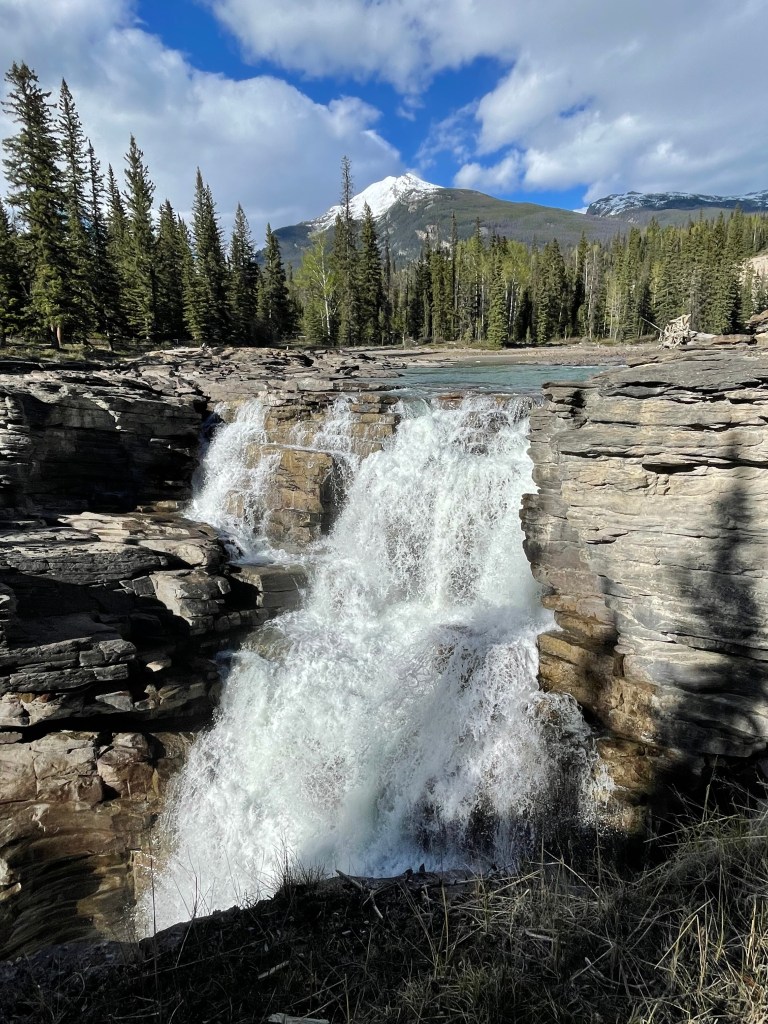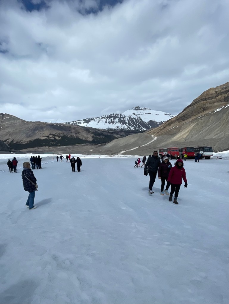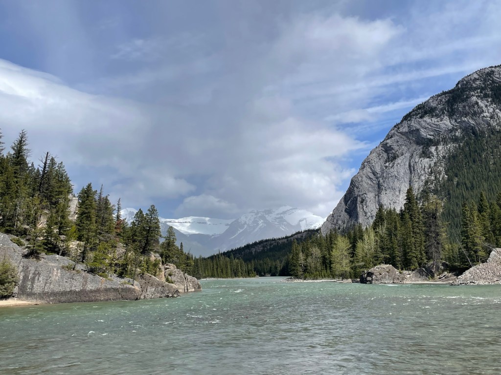 Rivers were engorged with snow melt, gushing across the rocks as they flowed down the mountains. The snow melt from Mount Snow Dome on the triple continental divide flows to three oceans – Arctic, Pacific and Atlantic. Many of the rivers had that same aqua hue, caused by the glacier flour filled with minerals. Lake Louise was not yet ice free. From a viewpoint on top of Sulpher Point, I could see snow rolling into Banff off the mountain until the city was covered in a cloud, 15 minutes later it was clear again. When we had the opportunity to walk on the Athabaskan Glacier, part of the Columbia Icefield, snow flurries whipped round us and the ice crunched beneath our feet. Then, a mile down the road, as we experienced a skywalk over a steep hillside and roaring river, the sun shone brightly and it was a wonderful day. The towns were quaint, filled with shops and restaurants. Banff especially, which was created for tourists. You can only live in Banff if you work there or own a business. Our hotels, Rimrock and Chateau Lake Louise were excellent, both in service and comfort. I attended a great mixology class at the Chateau. This area is well worth a visit if you love incredible views, interesting wildlife, impressive hotels and charming little towns.
