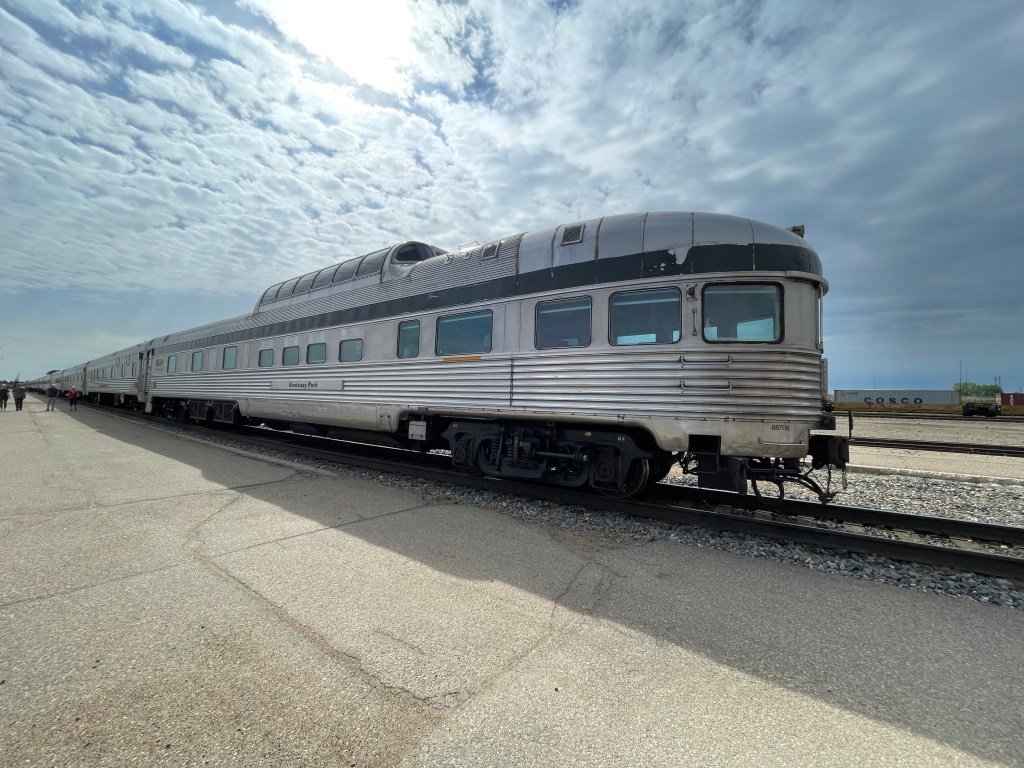 Our trip on the Via Rail was supposed to leave from Jasper, but a train derailed on the line we were to travel, spilling sand all along the track. Luckily, there were no casualties. So the train company had to scurry and figure out how to get us rerouted. Some thought they would just end up flying us to Toronto, which would have been a shame. Instead they bussed us to Edmonton where our train ,which was rerouted from the other direction, would be waiting. It took most of the day for them to work out the details, then after a 4 hour ride, we eventually got on the train. We were fortunate to be on one of the first buses to leave, arriving just after 9 pm. Others, including the California couple we had lunch with on the Mountaineer, didn’t get in until after 2 am. I was already in my cabin asleep. When the train jerked into action at 3, it woke me up, but then rocked me back to sleep. While we waited In Jasper for things to get straightened out, we meet a couple from Colorado Springs, both retired from the Air Force. They had been on the Mountaineer too, but in a different car. We ran into them again in Toronto.