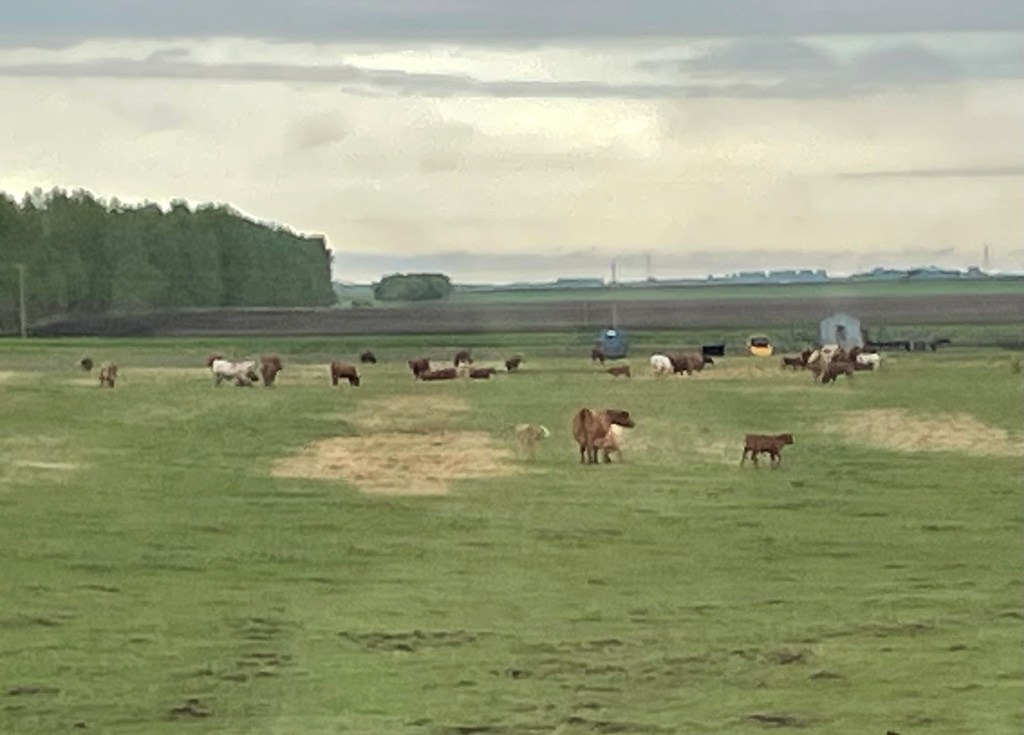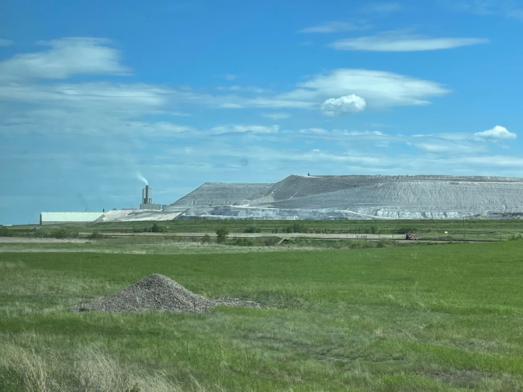At night the rocking of the train was quite pleasant, during the day not so much. Walking the hallway had you careening between the two walls, luckily they were close together. Sitting in the domed observation car was very pleasant. The Canadian landscape flew by, changing from snow covered rocky mountains in Alberta, to the spacious flat plains of Saskatchewan, to the green woods of Manitoba and Ontario filled with countless lakes. We saw herds of bison and cattle, lots of ducks, Canadian geese, and red-winged and yellow headed blackbirds. Big bushes of bright purple lilacs caught your eye – familiar to me from my Wisconsin childhood but seldom seen in the heat of Tennessee. Tall wooden grain houses popped up now and then, along with red barns, and abandoned farmsteads. Saskatchewan discovered potash not too long ago and huge piles of the white chalky substance could be seen for miles, the equipment on top looking like tiny ants. There are ten providences and three territories in Canada but we only experienced five of them on our nine day journey. Canada is the second largest country in the world, Russia is the first and the US the fourth.
