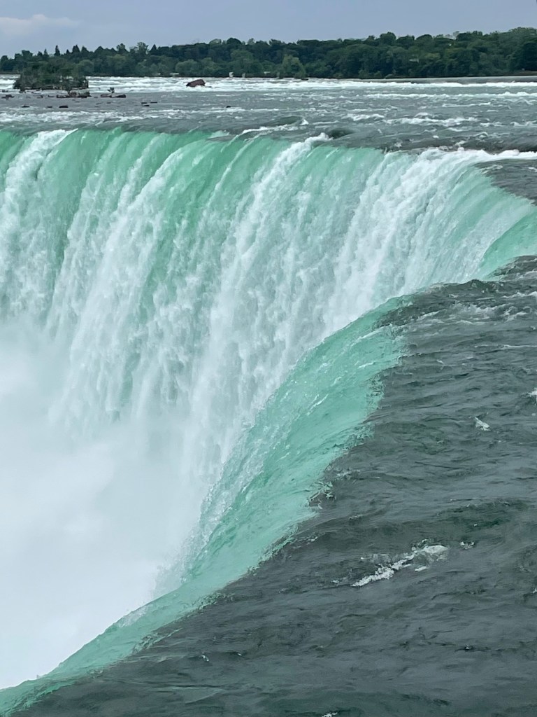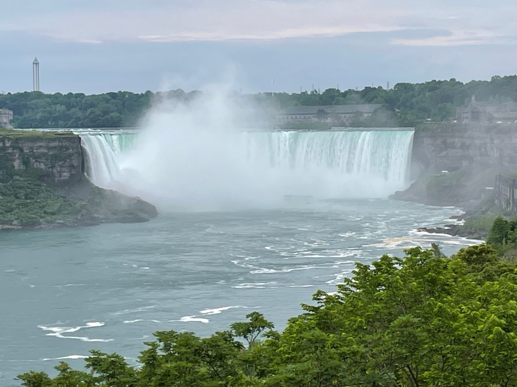 After a late start in Edmonton – we were quite behind schedule, we made good time in the three days we were on the train and arrived in Toronto at least two hours early. The beautiful Fairmont Royal York Hotel let us check in early, so we had an opportunity to get out and see part of the city. We visited the Art Gallery of Ontario to see a Group of Seven exhibit, featuring paintings of the unique and beautiful Canadian landscape and the daily lives of Canadians during the 1920’s and 30’s. The museum was handsome and the exhibit a real treat. Toronto was so much warmer than anywhere I had been for several weeks, so afterward, I walked back to the hotel enjoying the sunshine and doing some people watching. Toronto is considered one of the most ethically diverse cities in the world, over 200 languages are spoken here. English and French are most widely used and written on most signage throughout the country. Toronto is the 4th largest city in North America. We celebrated the end of our trip with dinner at the CN Tower, providing marvelous views of the city and Lake Ontario. Esther Lee’s grandson just happened to be in the city on business and met us at the restaurant. It was a delight to have him join us. It was weird hearing about the Great Lakes here, as to me they seem quintessentially American. And I could not leave without visiting Niagara Falls. The beauty and power of water never ceases to amaze me.
